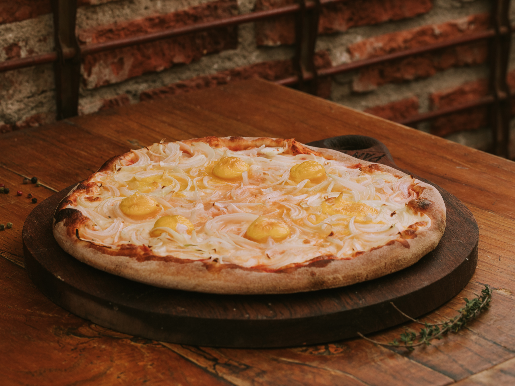 Locura Compartir Salsa de tomate, muzza, cebolla y huevos. * Solo lleva yemas. Presentaciones Seleccioná las opciones que quieras.Pequeña$17.340Grande$20.400 Observaciones 0 / 150