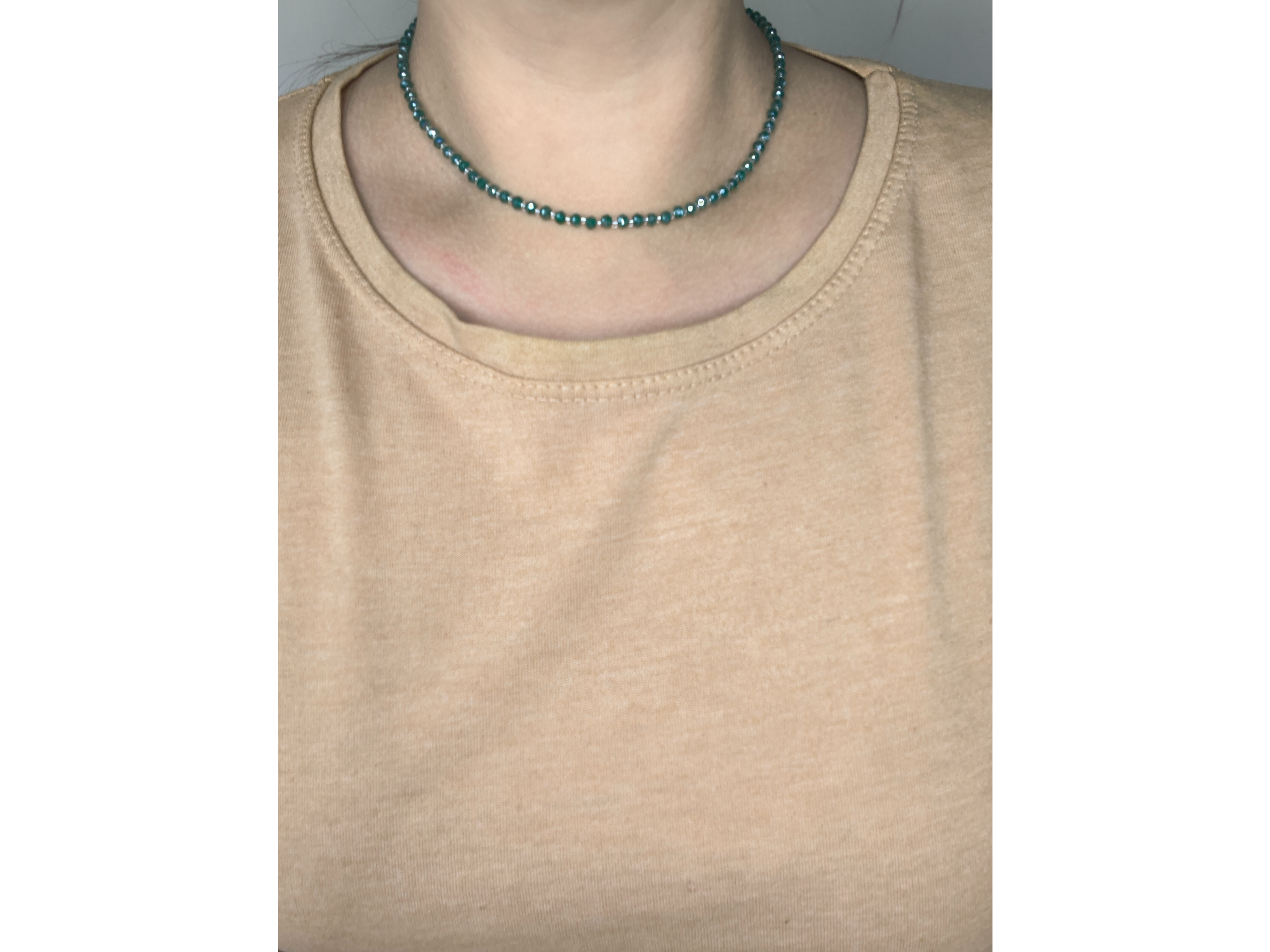 Confeccionado con cristales, tiene un largo aproximado de 40 cm, más una cadena de extensión de 5 cm para ajustarlo a tu medida.