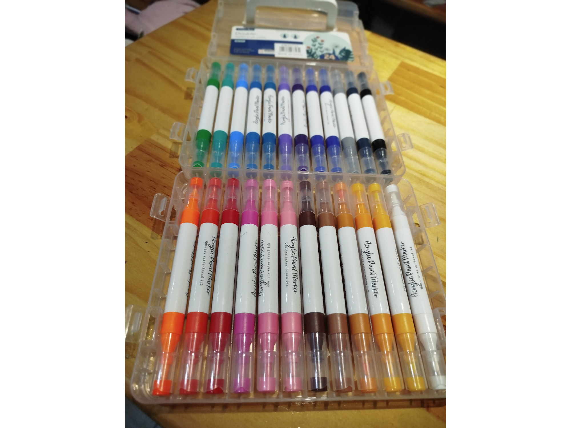 Marcadores acrílicos dobles x 24 Última unidad Vienen en bandejas individuales Acrílicos (aptos para todas las superficies: madera, tela, cerámica, papel, vidrio, plástico) Doble punta (redonda y pincel)$24.000 Observaciones 0 / 150 Encontrá productos relacionados ACRILICOS (8)