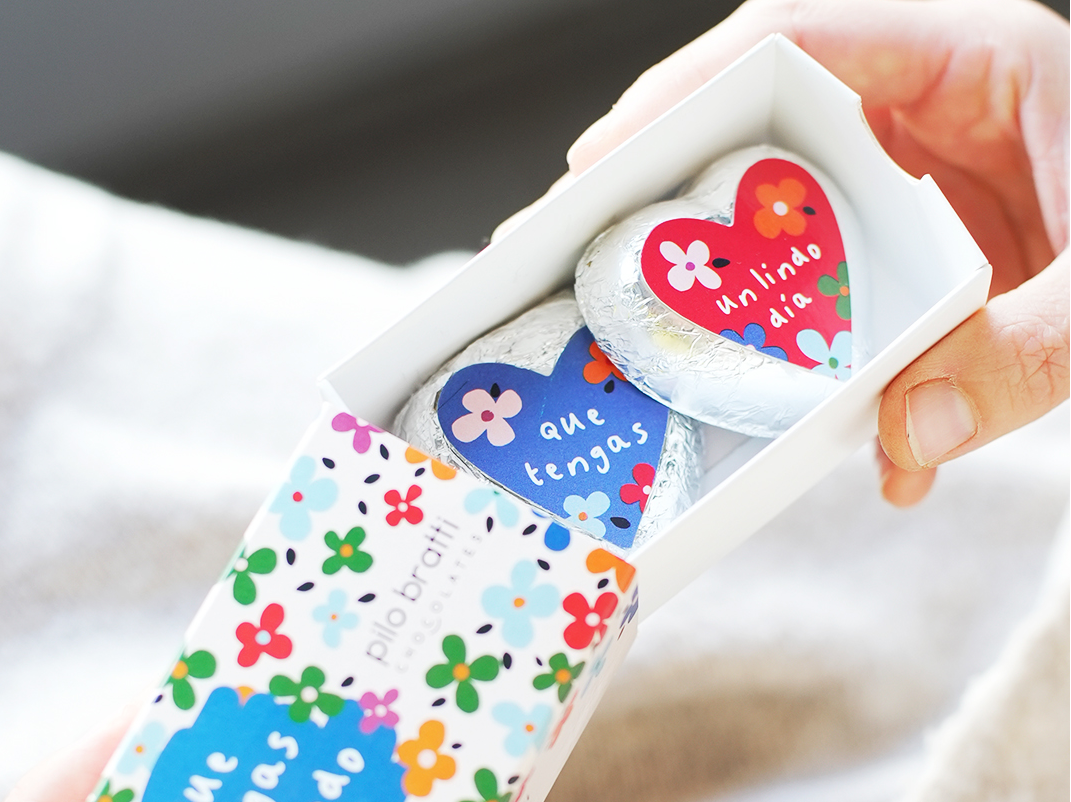 Cajita Duo Corazones (Pack de 12 unidades)Cajitas con 2 bombones de chocolate rellenos con dulce de leche. Una opción delicada y rendidora. Ideales para sumar a regalos, combos o vender como detalle individual. Pack de 12 unidades.$32.000 Observaciones 0 / 150