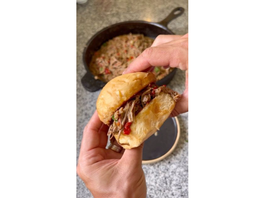 Carne Mechada / Salsas / PancitosRinde 20 sándwich • 550 g Bondiola de Cerdo desmenuzada / Cuadril Vaca / cocción 6 horas • 4 Variedad de Salsas: Morrón, Provenzal , Vitel y Criolla • 20 Pancitos Rosetas Presentaciones Seleccioná una opción.Bondiola de Cerdo desmenuzada Rinde 20 sándwich $112.000Cuadril Vaca desmenuzado Rinde 20 sándwich $124.000 Observaciones 0 / 150