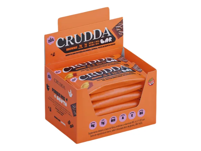 Crudda Bar Brownie - 40 Grs.Barrita de proteína de arveja y soja, quinoa pop, pasta y harina de maní, pasas de uva, cacao amargo y un baño de chocolate semi amargo, con el crunchy justo de maní. Presentaciones Seleccioná las opciones que quieras.Unidad$1.990Caja por 10 unidades no aplican otros descuentos $19.900$17.560 12% OFF Observaciones 0 / 150