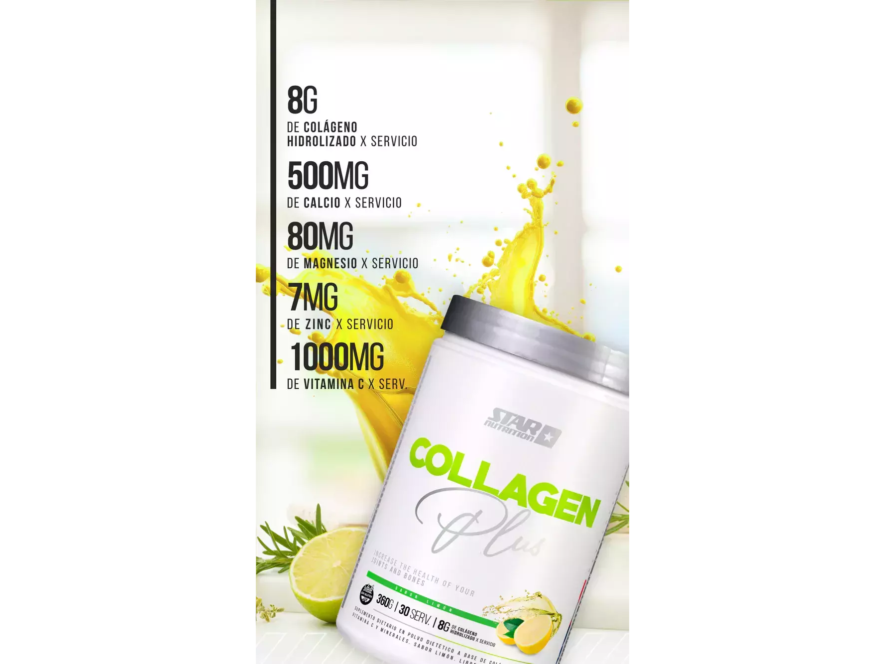 Disolver 1 porción diaria en agua o jugo, en ayunas o post-entrenamiento.