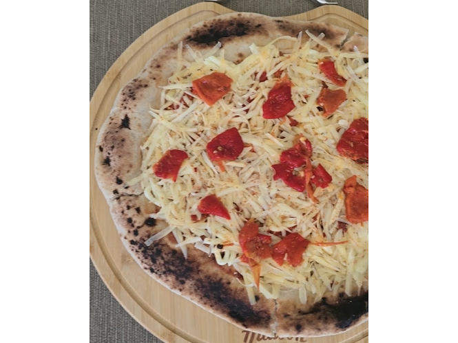 Pizza Di FuocoMasa madre fermentada 48 hs. Queso provolone rallado, morrón ahumado salteado con ajo, queso muzzarella y salsa de tomate casera. 8 porciones Peso neto 650 grs$9.800 Observaciones 0 / 150
