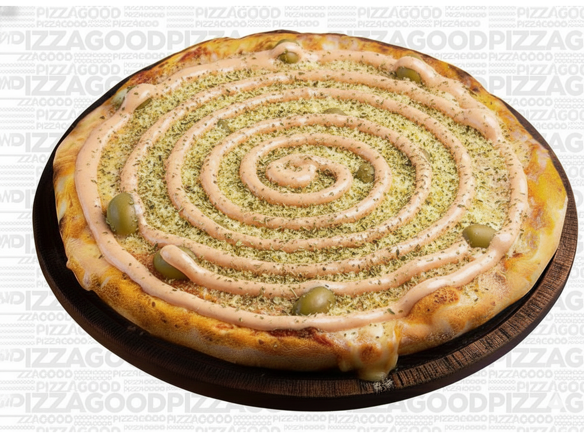 Masa casera, salsa de tomate natural, mozzarella, huevo rallado, salsa golf, orégano y aceitunas verdes.