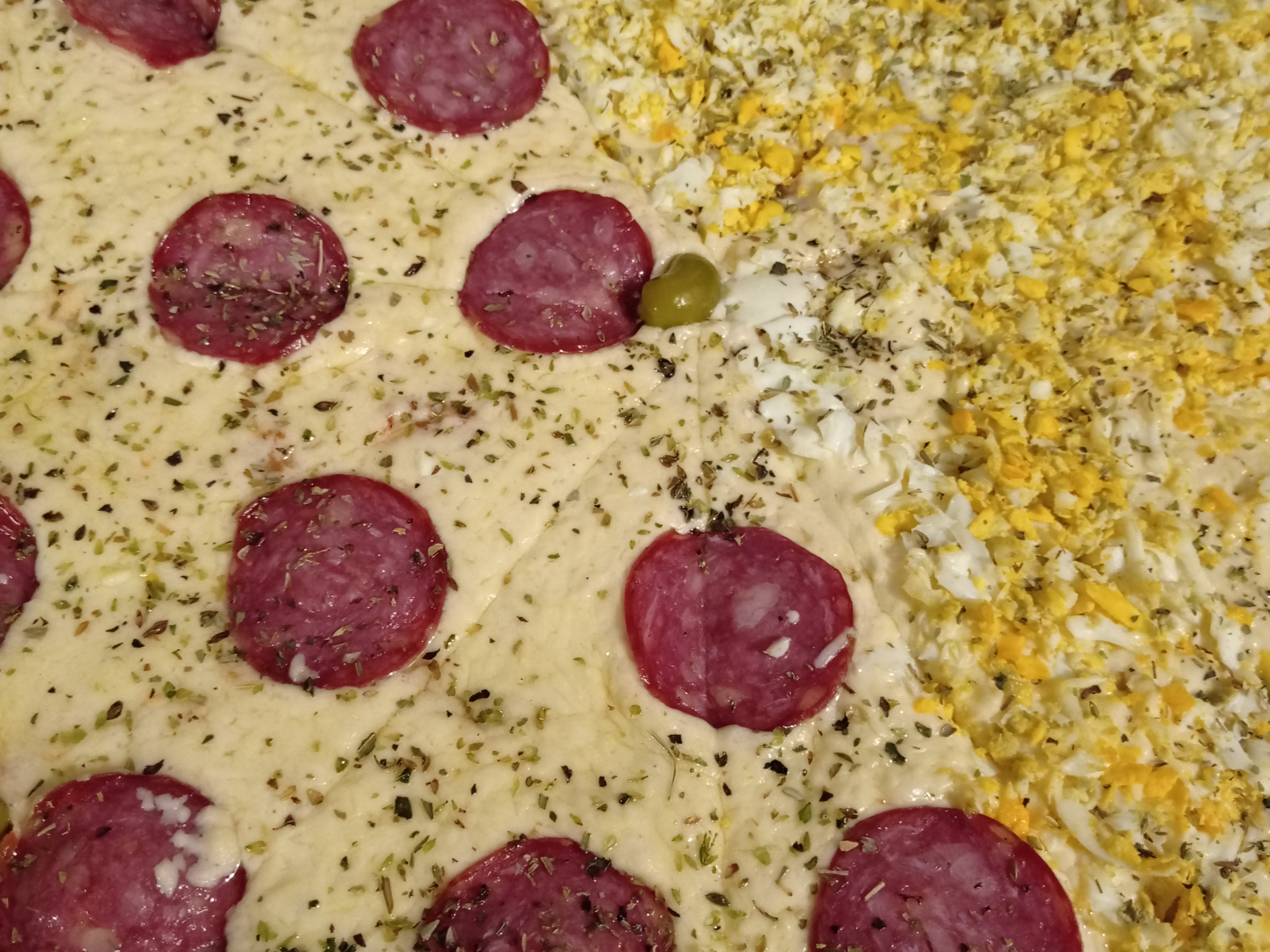 CalabresaMasa casera, salsa de tomate, muzarella, salame, orégano y aceitunas.$16.000 Complementos para tu pedido Agregá items adicionales a tu pedido. Extra jamón Seleccioná las opciones que quieras.Extra jamón media pizza$3.000 Observaciones 0 / 150 Encontrá productos relacionados PIZZAS (68)