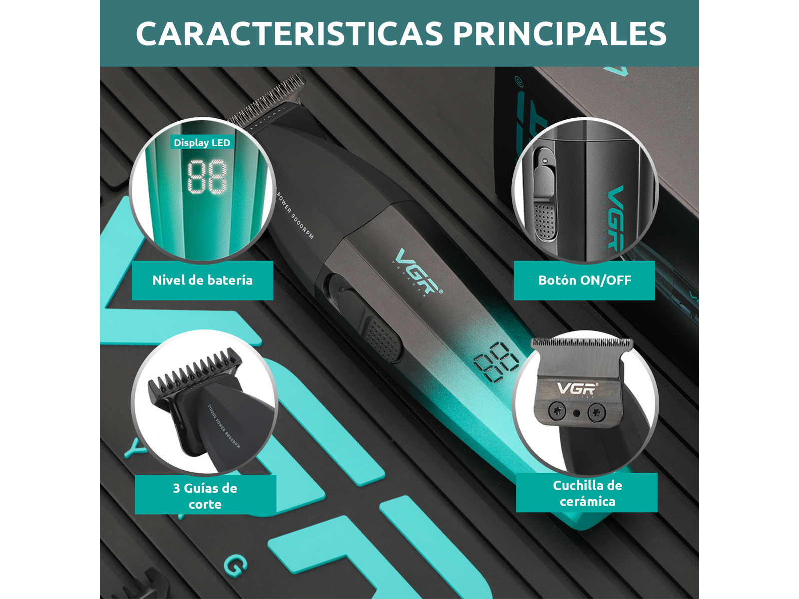 La VGR V-906 es una máquina patillera profesional (trimmer) diseñada para realizar delineados, contornos y terminaciones de alta precisión en barbería. Su motor de alta velocidad de hasta 9000 RPM permite realizar cortes rápidos y definidos incluso en cabellos gruesos o barba densa.