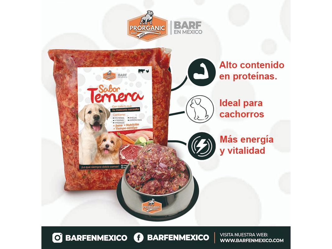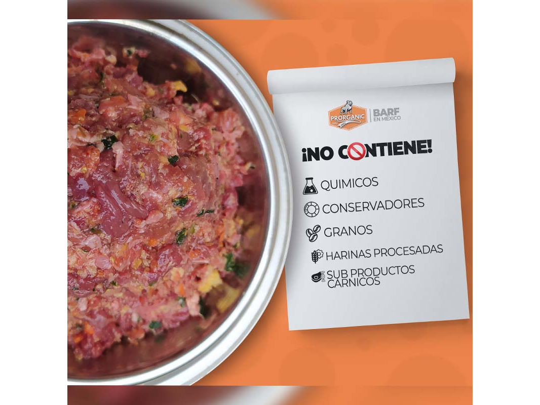 Alimento Crudo Biologicamente apto para tu Mascota. Elaborado con la Calidad y Responsabilidad a tal grado que tiene calidad para consumo humano, con ingredientes como Hueso Carnoso Triturado, Vísceras y Trozos de Mùsculo y Carne de Res, Pollo. Verduras como calabaza, zanahoria, espinaca y acelga. Asegurando mayor aporte proteínico y más carne, recomendado para Cachorros y Mascotas en desarrollo. Recibe en la comodidad de tu casa y consiente a tu mascota dándole lo que siempre debio haber comido y no te preocupes, ya que al estar empacado al vacio y bajo congelación no tendrás ningun problema para su mantenimiento.
