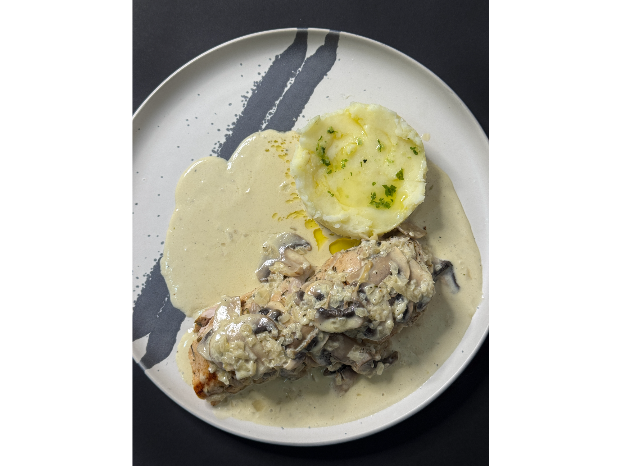 2 Pollos en salsa de champiñones + Guarnición a elección
