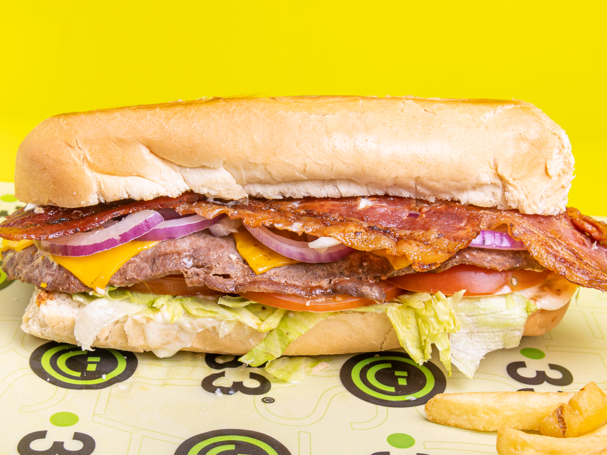LOMO YANKEEPan de lomo, bife de lomo, lechuga, tomate, bacon, triple cheddar, cebolla morada y mayo casera + PAPAS Presentaciones Seleccioná las opciones que quieras.GRANDE$15.500MEDIANO$13.650 Complementos para tu pedido Agregá items adicionales a tu pedido. AGREGAR CAZUELAS Seleccioná las opciones que quieras.Mayo casera 33$1.900Salsa 33 Receta de la marca $1.900Ketchup$1.900Mostaza$1.900Barbacoa$1.900 Observaciones 0 / 150