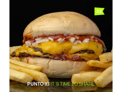 Pan de papa, doble burger con queso cheddar, cebolla cortada en brunoise, kétchup, toque de mostaza + papas Mc Cain! 🍔🍟 + PEPSI 354ml