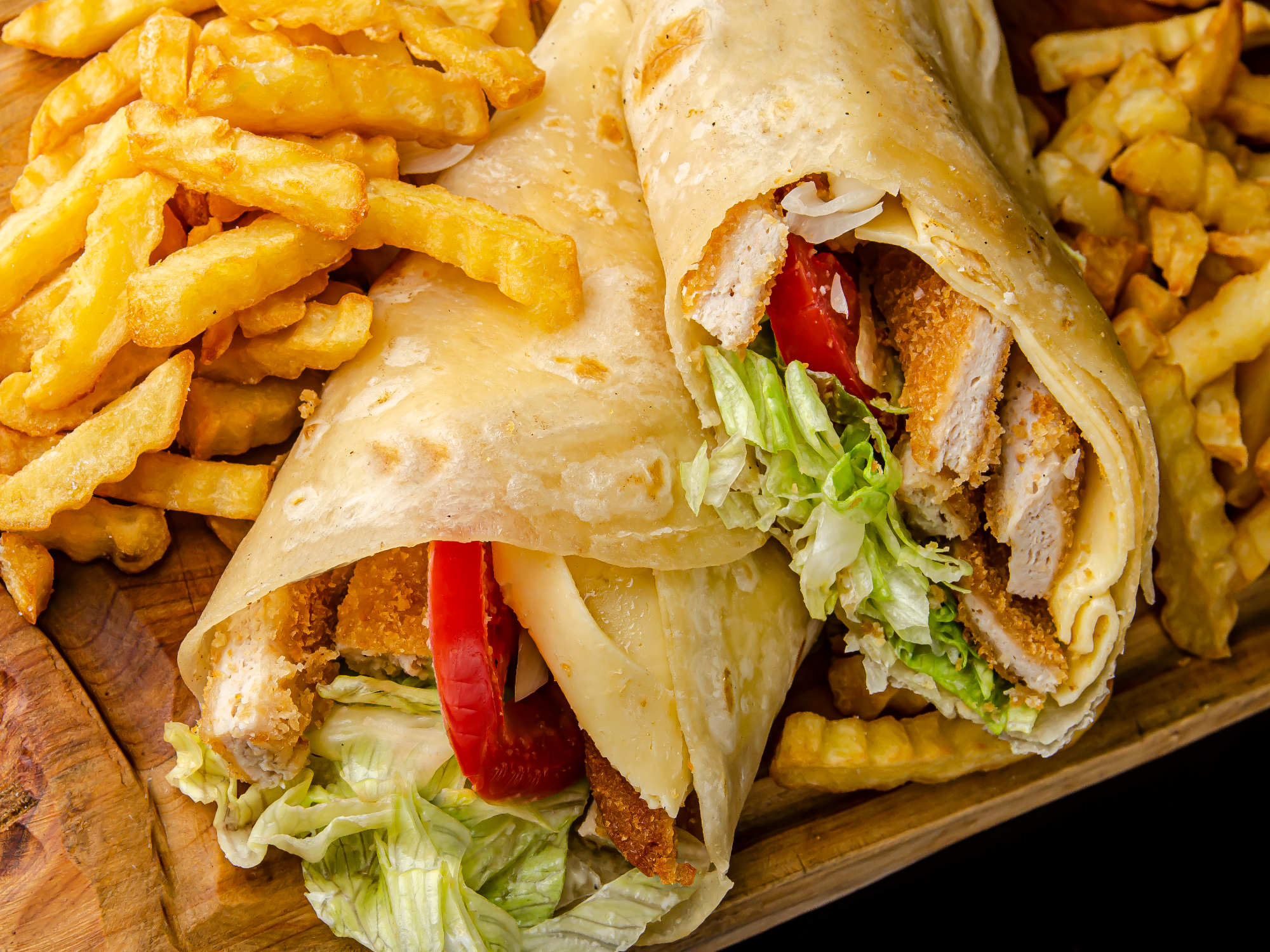 Pollo Crispy en tiras, queso, morrón en conserva, cebolla, lechuga, tomate y mayo casera 33 + papas Mc Cain! 🍟