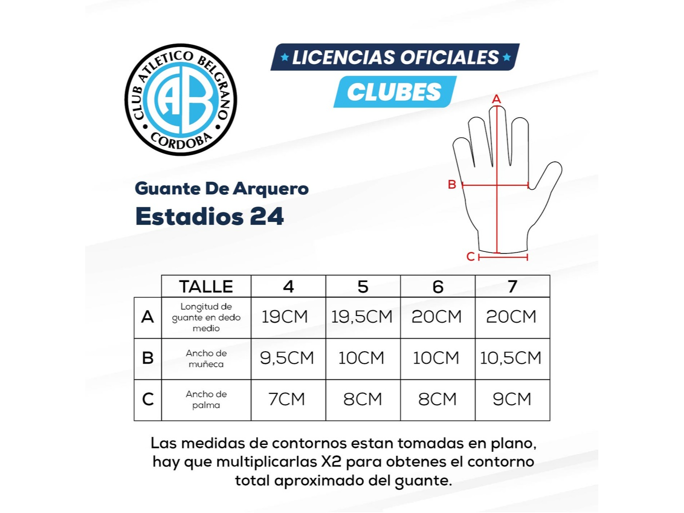 Los Guantes Estadios 24 del Club Atlético Belgrano son ideales para los jóvenes arqueros que sueñan con defender el arco pirata. Con el diseño que refleja los colores celeste y blanco y el escudo oficial, estos guantes transmiten la pasión celeste de Córdoba. Son perfectos para los chicos que dan sus primeros pasos en el fútbol y quieren hacerlo con estilo