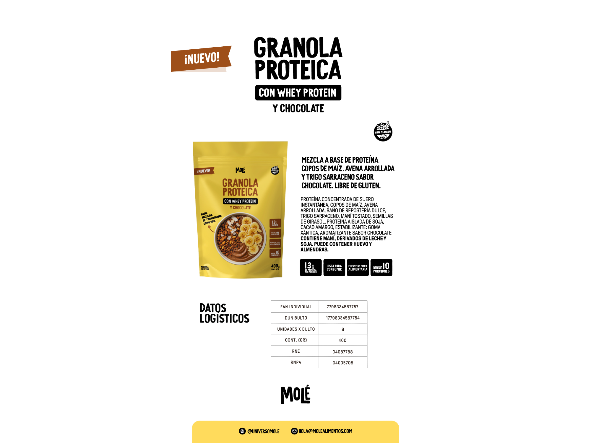 Granola proteica con whey protein CHOCOLATE 13g proteina por poción Compartir Última unidad $15.100 Observaciones 0 / 150