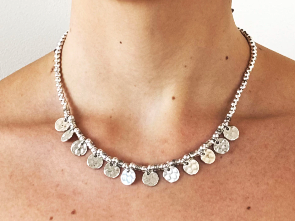 Collar Zambia Compartir por WhatsApp Copiar enlace Realizado con cuentas y moneditas de metal, largo 43 cm .$22.000 Observaciones 0 / 150