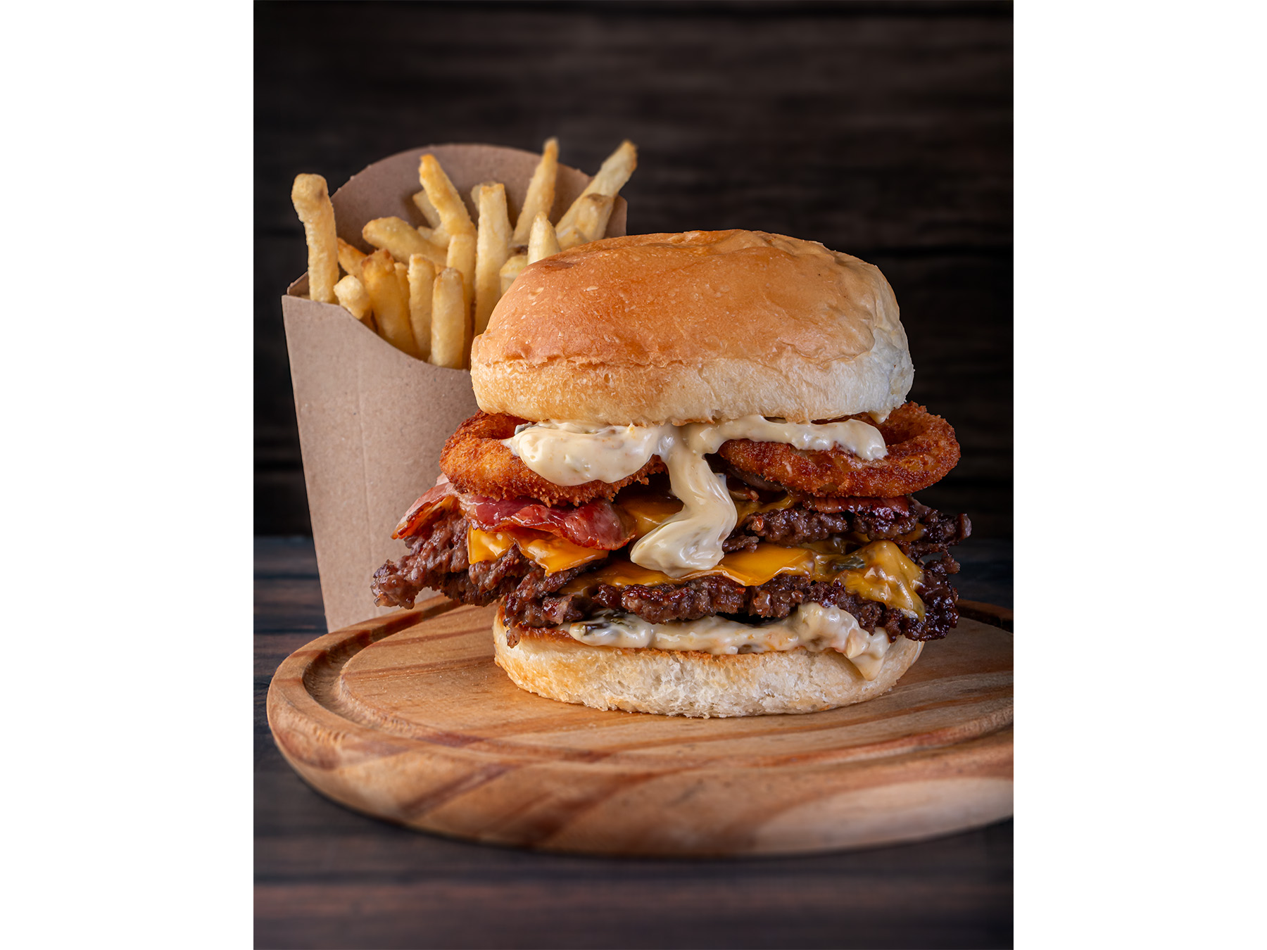 Red Hot ChiliPan de papa, doble cheddar, panceta, mayonesa de chiles tatemados y aros de cebolla. Presentaciones Seleccioná una opción.SIMPLE$9.000DOBLE$11.000TRIPLE$13.000 Personalizá tu selección Las siguientes opciones aplican para cada producto agregado. CAMBIO DE ESTILO DE PAPA Seleccioná las opciones que quieras.Cambiar papas baston por papas noisette Esta opción es para cambiar las papas baston por las papas noisette. NO ES UN EXTRA SOLO UN CAMBIO $500 Complementos para tu pedido Agregá items adicionales a tu pedido. EXTRAS Seleccioná las opciones que quieras.Pepinillos$800Panceta$900Cebolla Crispy$800Morron Asado$800Porcion de papas$1.500mermelada de panceta$800Medallon de Carne EXTRA$2.200 Acompañamientos Seleccioná las opciones que quieras.Papas con cheddar y bacon - CHICAS$5.000Papas con cheddar y bacon - GRANDES$6.000Nuggets 8 unidades. $6.000Papas Noisette$1.500 Observaciones 0 / 150
