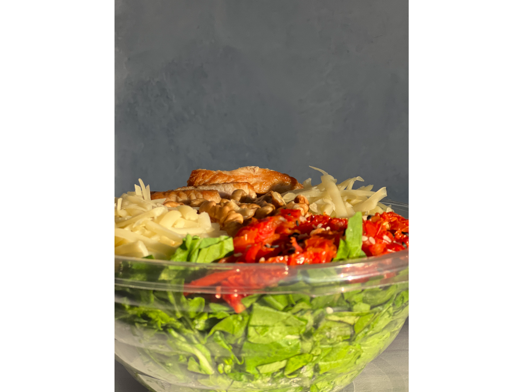 MEDITERRANEA Compartir por WhatsApp Copiar enlace Rúcula, pollo a la plancha, queso reggianito, tomates secos y nueces.$7.500 Observaciones 0 / 150