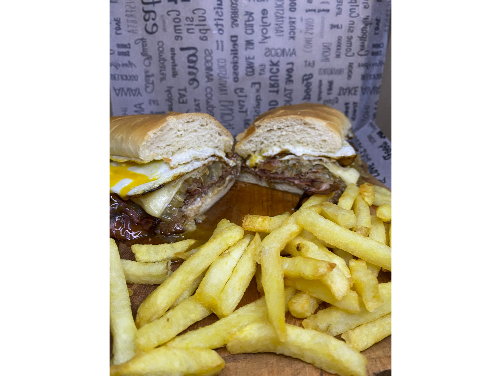 LOMO AMERICANO Compartir Pan, panceta y cebolla con huevo , doble feta de queso y en la base salsa barbacoa y mayonesa de la casa$15.000 Observaciones 0 / 150