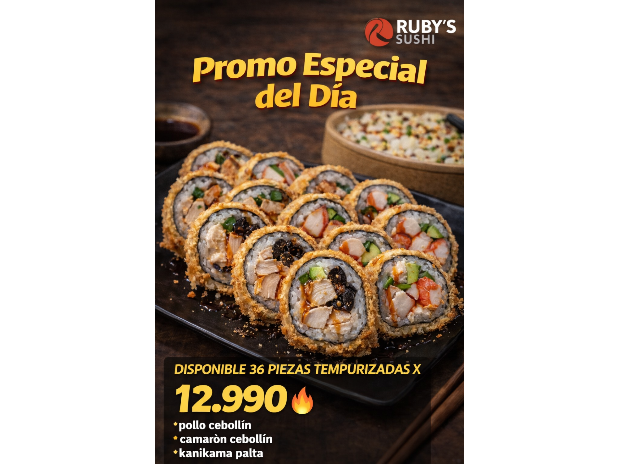 Promo mas vendidas Compartir por WhatsApp Copiar enlace Promo tempura $12.990 3 handrols x 9990 $9.990 Promo 36 mixtas $15.990 Acevichado x 24 explocion 🔥 $19.000$16.490 13% OFF