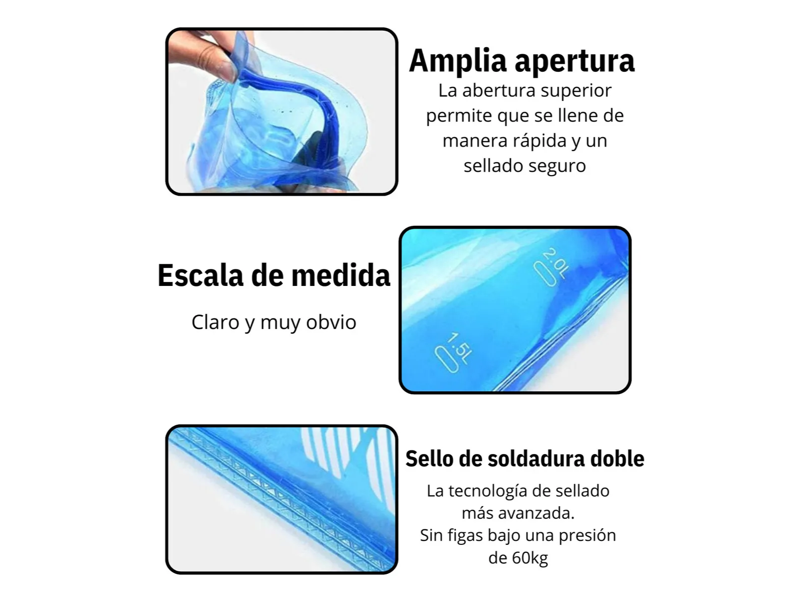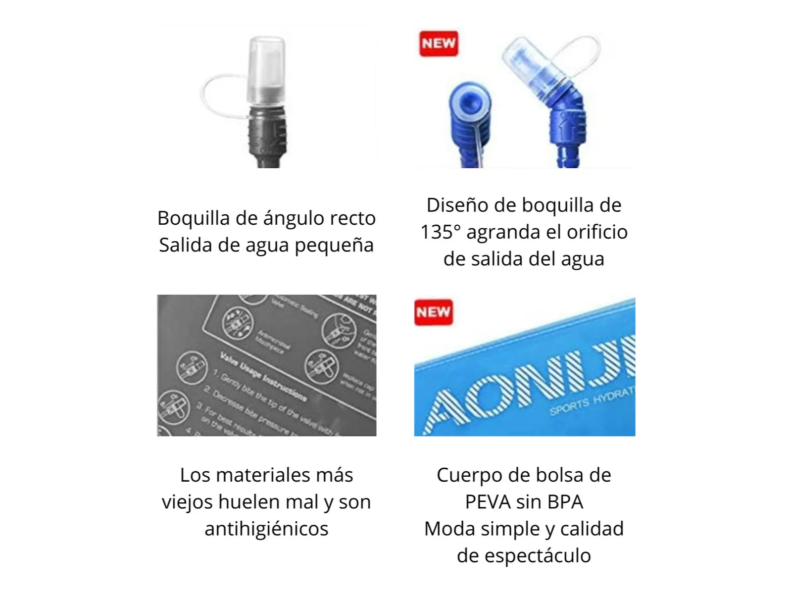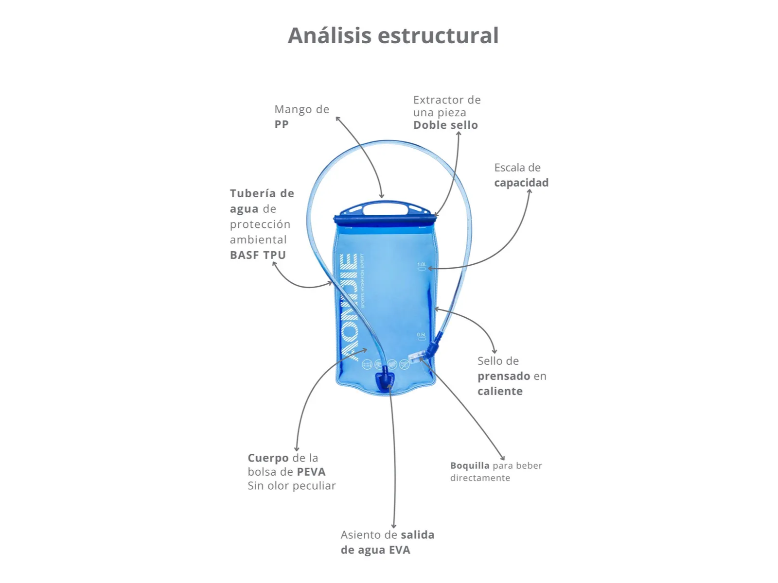 2 unidades en stock BOLSA DE HIDRATACIÓN AONIJIE 1L 100% libre de BPA y PVC. Características: * Compatible con todos los chalecos AONIJIE con capacidad para bolsas de hidratación de 1 L y con la mayoría de mochilas de otras marcas con capacidad para bolsas de hidratación de 1 L. * Válvula con tapadera para evitar goteo. * Abertura superior que permite rellenarla y limpiarla fácilmente. * Válvula omnidireccional que proporciona una gran cantidad de líquido. * Diseño de válvula que evita que entre aire y te proporciona un cierre seguro. * Construcción duradera cuerpo de poliuretano termoplástico (TPU). * Bidón insípido. * Tubo de hidratación duradero y resistente a las torceduras. * Escala de relleno que te permite controlar el volumen de líquido. * Posibilidad de cortar el tubo a la medida deseada, y volver a insertar la válvula. * Sin BPA * Materiales: TPU, PP, PEVA, y Silicona * Uso alimentario. Para uso con agua. Para uso repetido