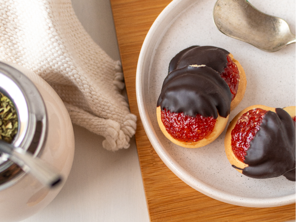Clásicas galletitas artesanales elaboradas con masa suave y mantecosa, rellenas con dulce de membrillo, sumergidas en chocolate negro de excelente calidad. Su sabor tradicional y textura delicada las convierten en una opción ideal para acompañar desayunos, meriendas o servir en mesas dulces.