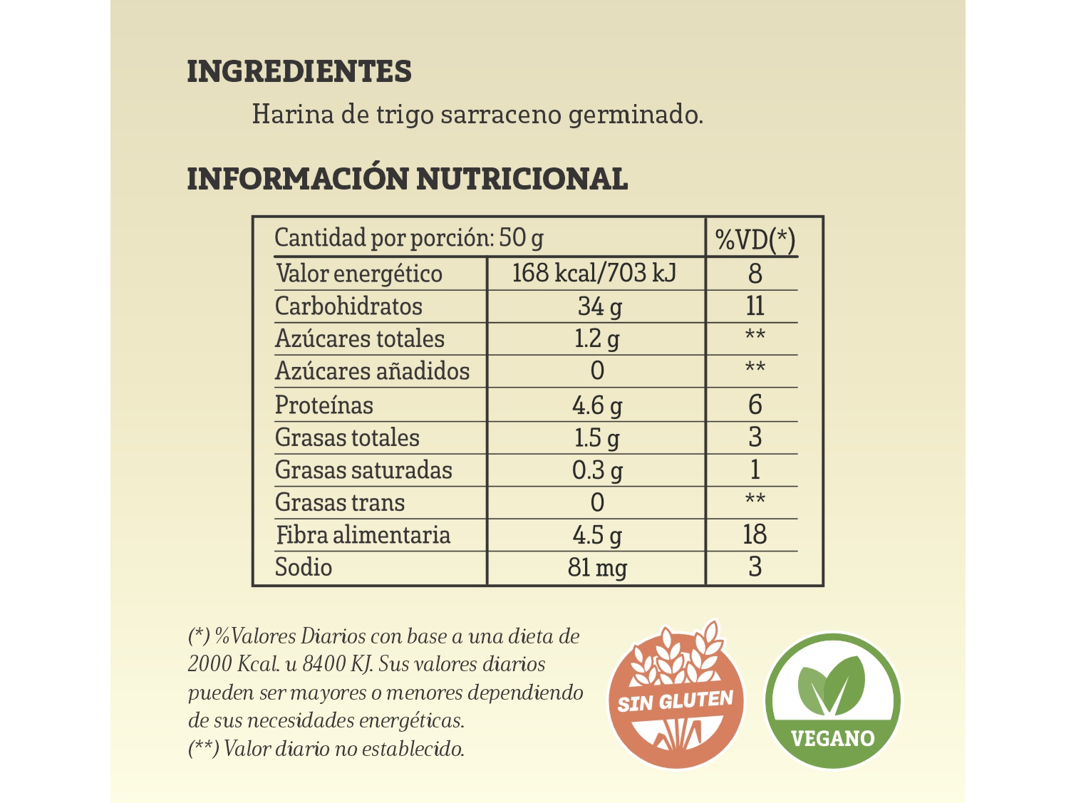 Reemplazá la harina de sarraceno tradicional por nuestra versión germinada. Podés combinarla con cualquier otra harina. Tené en cuenta que absorbe más líquido, por lo que quizá necesites ajustar tus recetas 💧👩🍳.