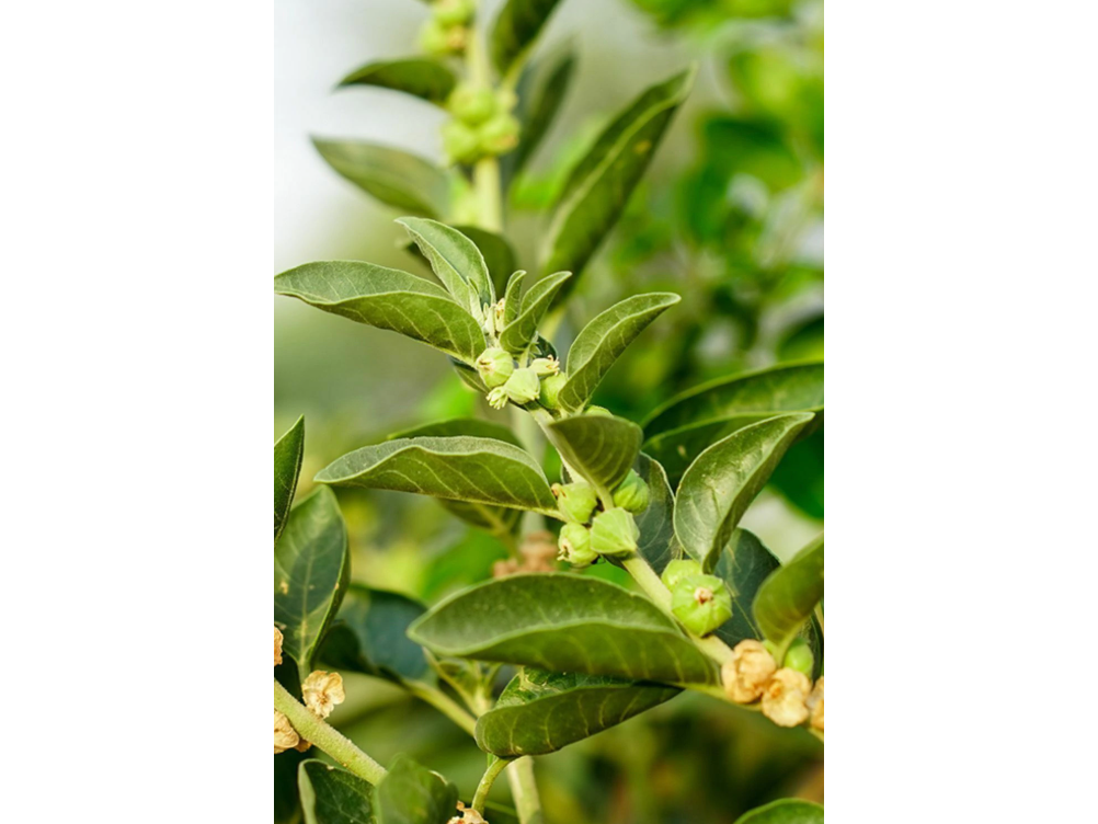 La Ashwagandha (Withania somnifera) es una planta medicinal originaria de la India y otras regiones del sudeste asiático. Es conocida como "ginseng indio" por sus potentes propiedades energéticas y adaptógenas. Su nombre en sánscrito significa "olor de caballo", lo que alude tanto a su aroma como a la vitalidad que se dice aporta a quienes la consumen.
