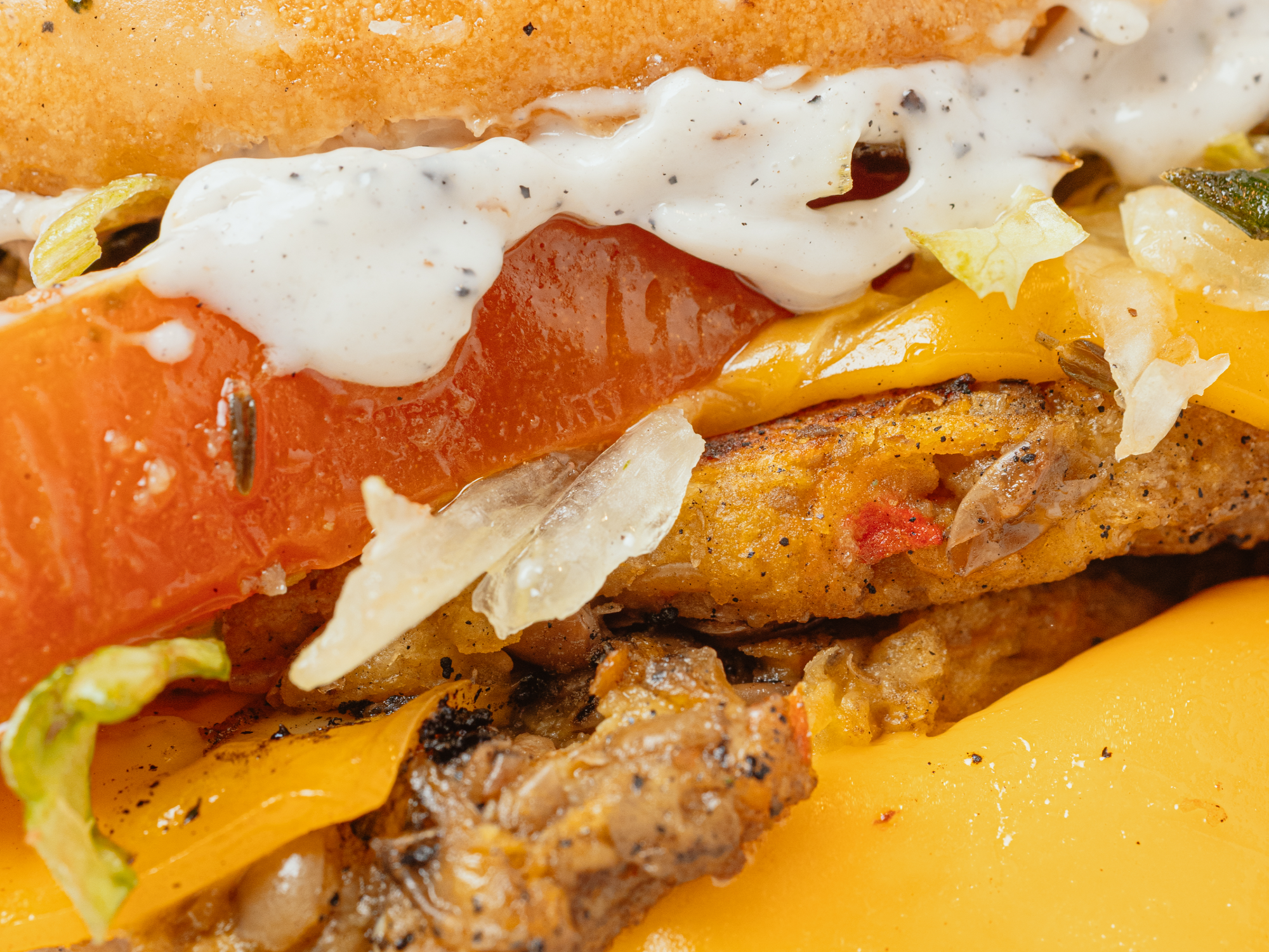 Medallón veggie de 120g, queso cheddar, lechuga, tomates confitados, puerro crispy y salsa trufada. Incluye papas fritas.