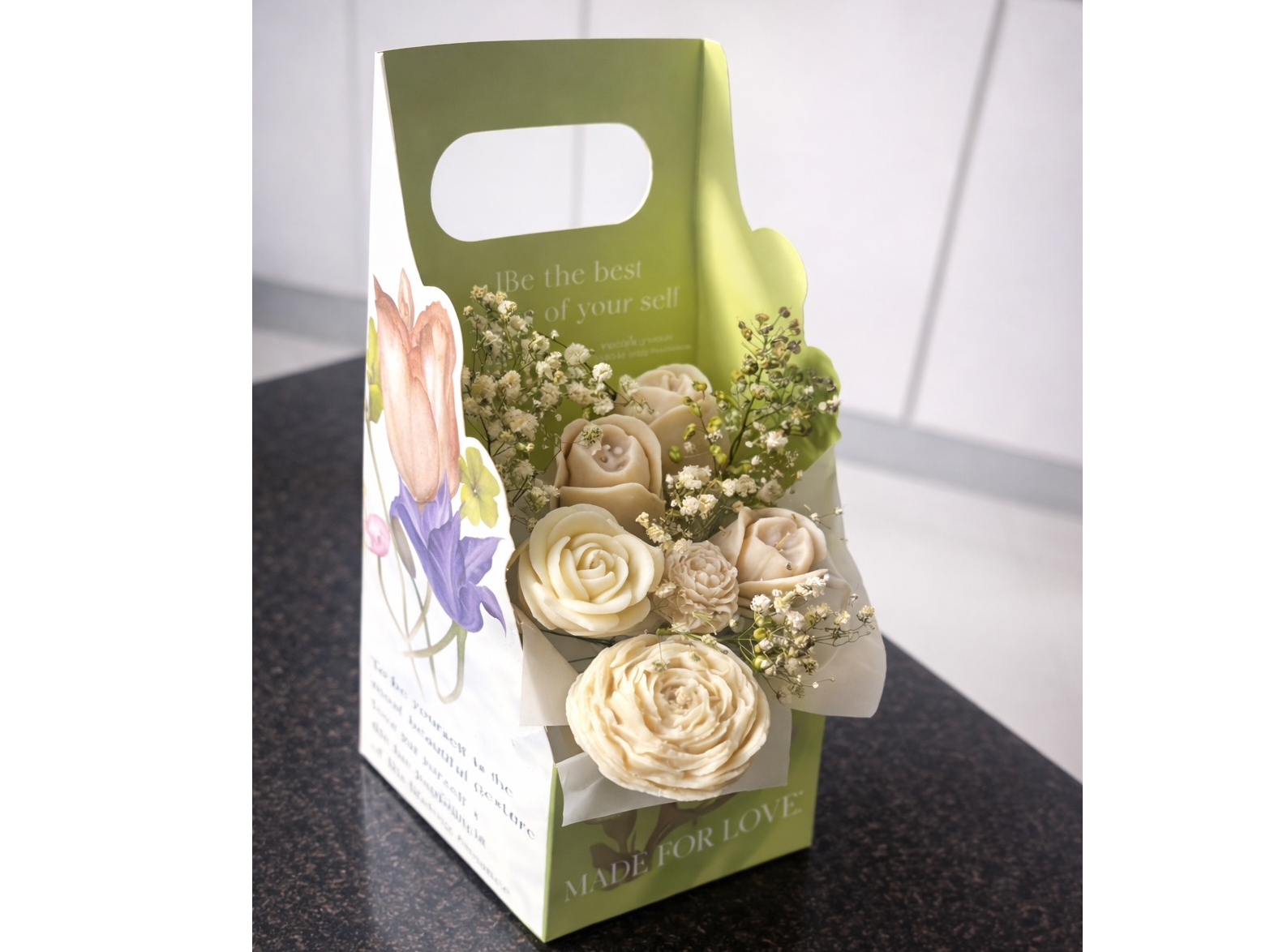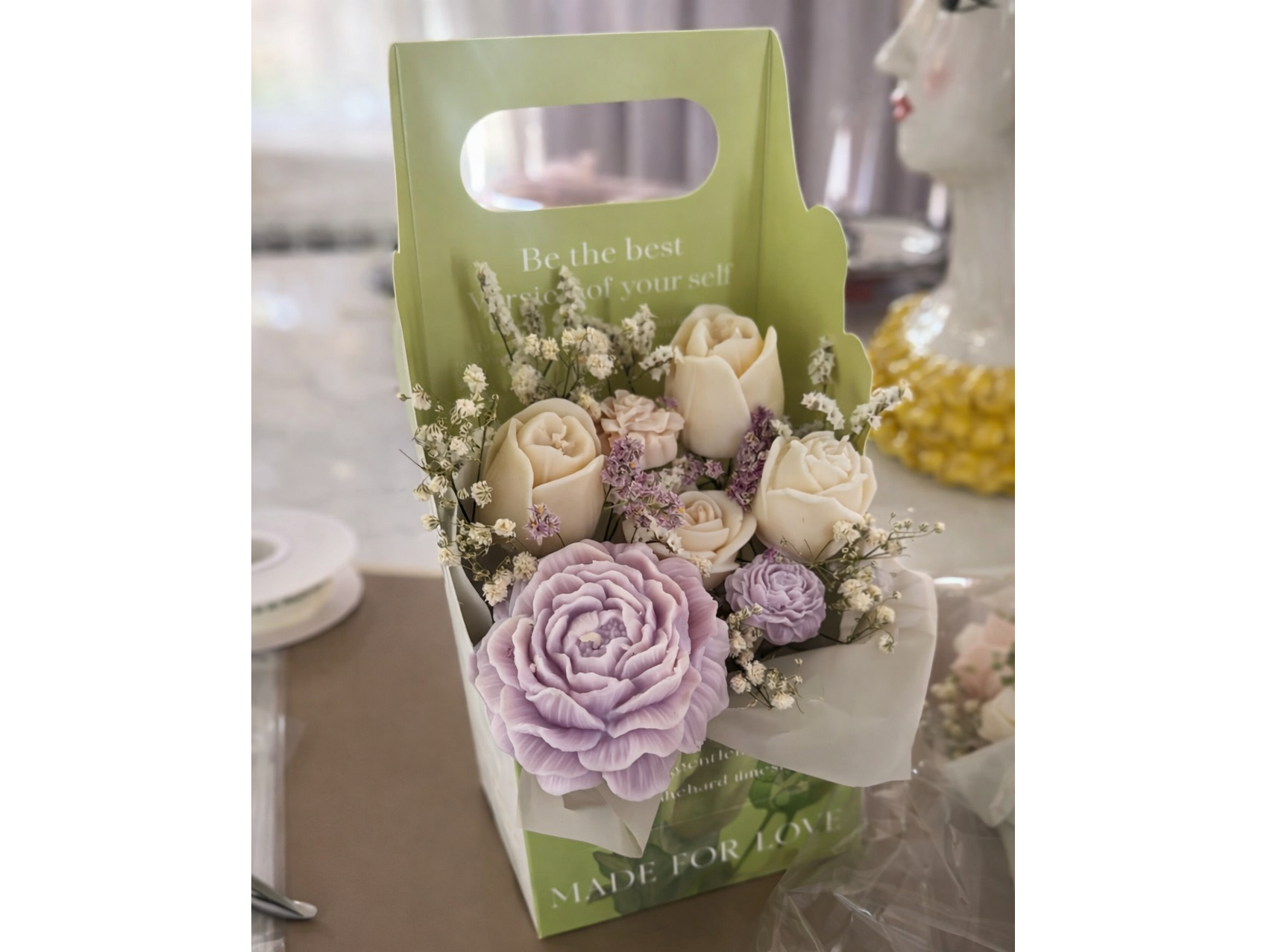 Ramo hecho con amor! Incluye 6 diferentes tipos de velas en diseño floral.