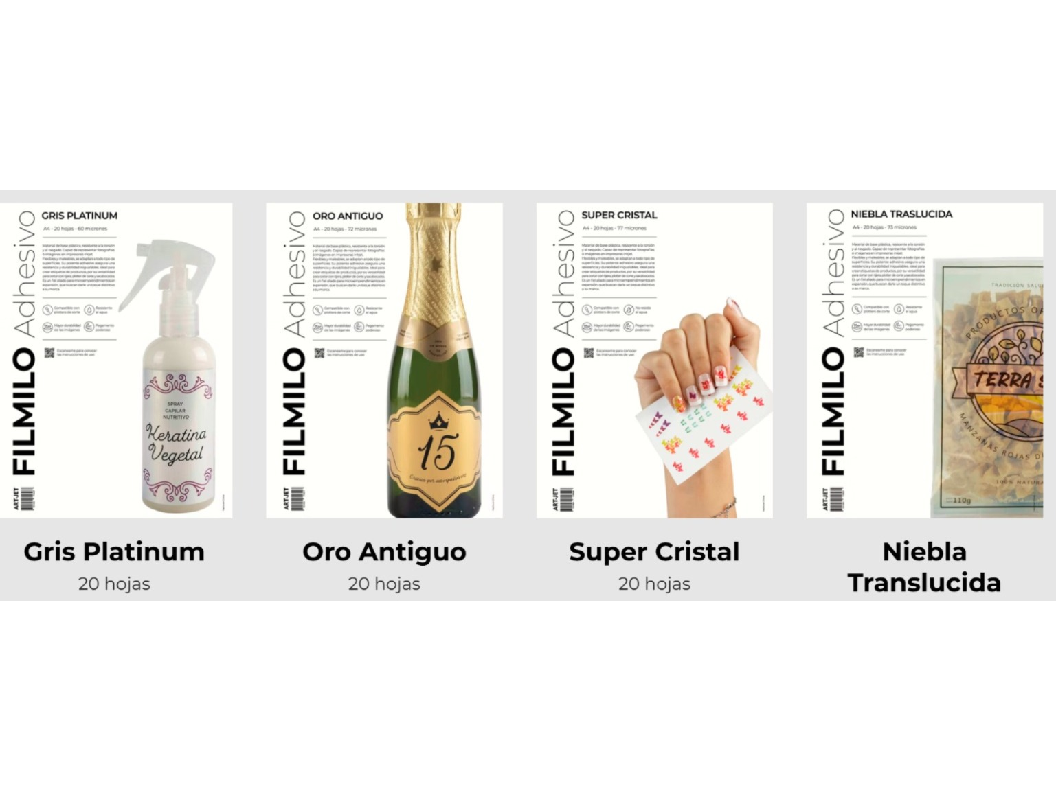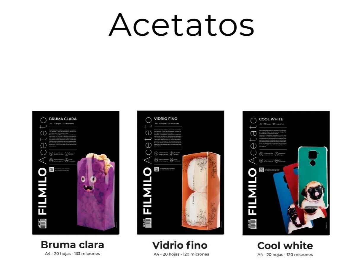 Vienen en dos presentaciones Adhesivo y Acetato.