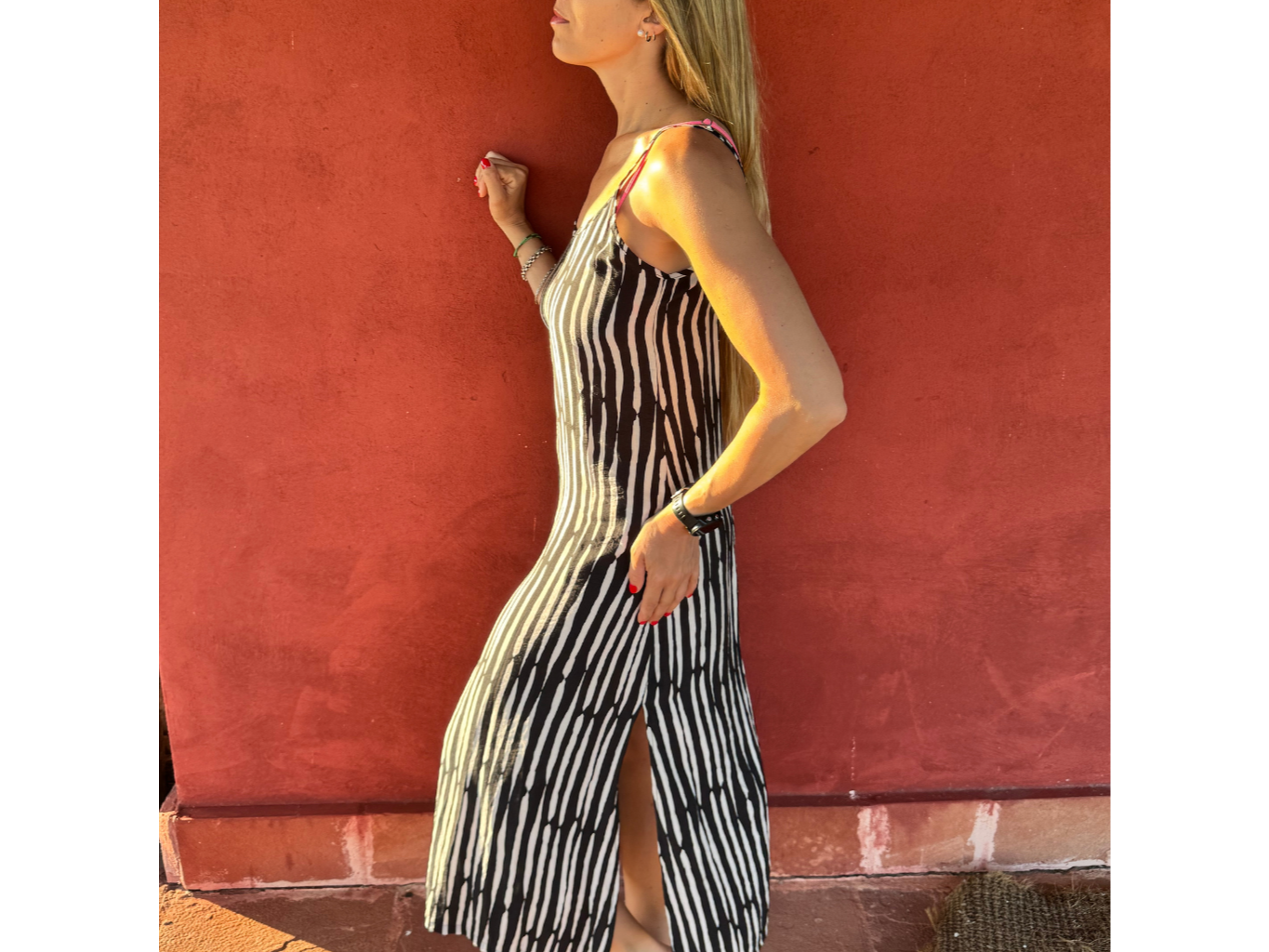 Olvídate del calor y del look aburrido. El Vestido Adinkra te garantiza una presencia inmediata gracias a su patrón en blanco y negro, y una sensación de frescura inigualable gracias a la fibra Tencel. Es la elección perfecta para un verano cómodo y lleno de estilo. Viste una prenda audaz y siéntete ligera.