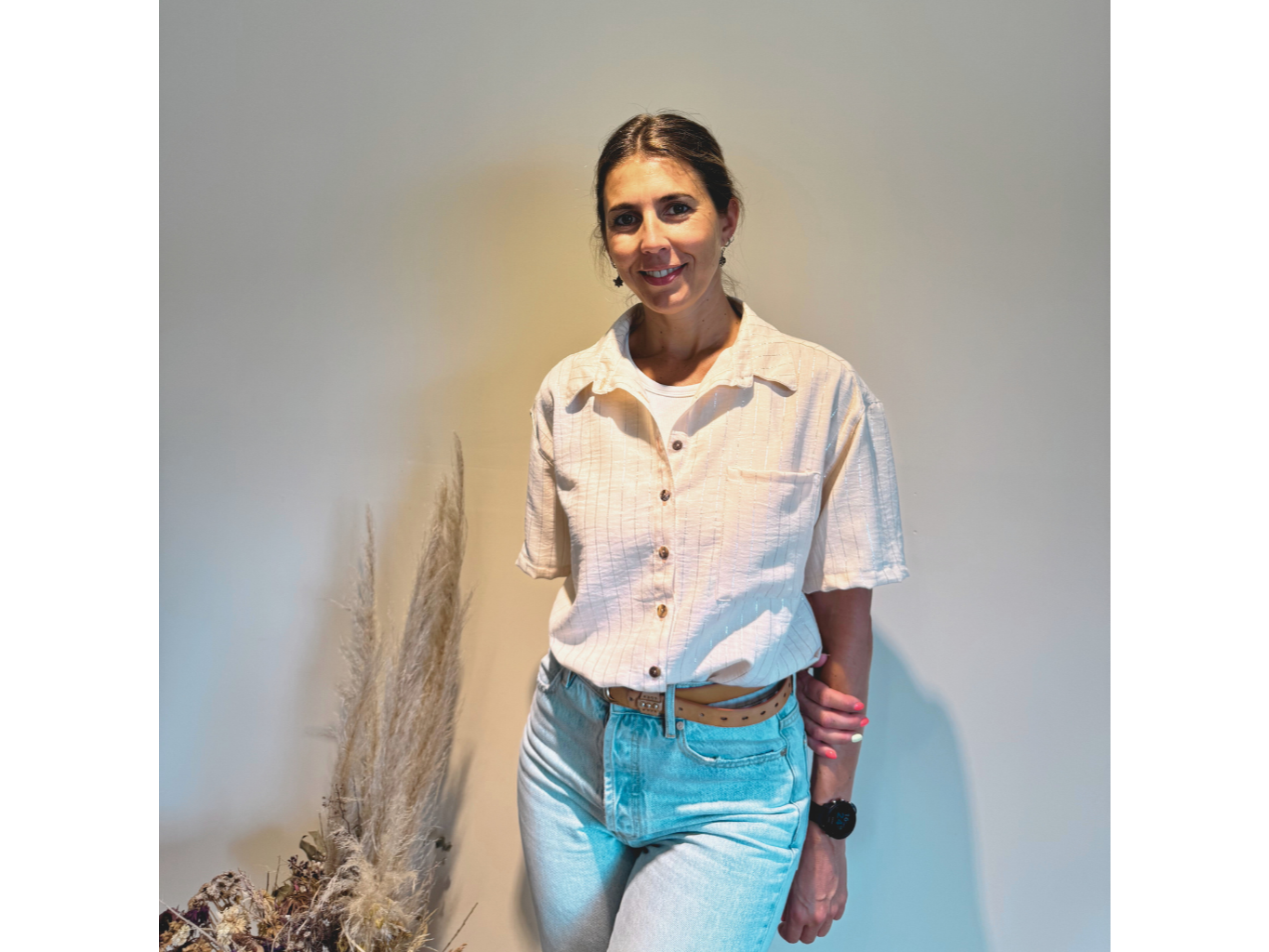 Regálate la sensación de un lino de alta gama. El color Manteca irradia calma y sofisticación, mientras que el destello plateado te da un aire de lujo sutil y discreto. Siente el frescor natural del Lino Camisero, que te envuelve en una comodidad chic. Una prenda que te hace sentir fabulosa, sin esfuerzo.