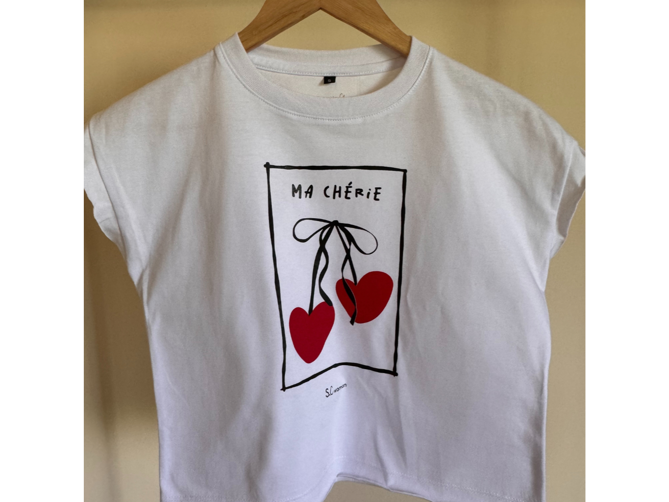 La Remera Cherry es la definición del estilo cómodo y con onda. Su estampado de cerezas rojas y el texto "Ma Chérie" le aportan una vibración dulce y coqueta. En cuanto a la calce, el corte es ancho y cómodo, asegurando una caída suave y fresca ideal para el calor. Su diseño incorpora hombreras caídas que relajan la silueta.