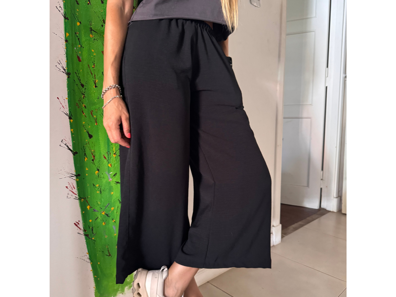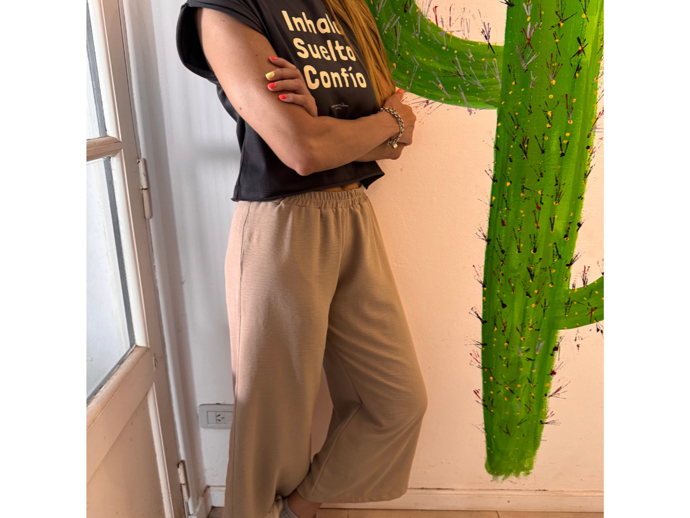 Combina tu Palazzo Mery con nuestras remeras o blusas para completar un outfit profesional o casual. ¡Compra ahora y disfruta de la comodidad sin renunciar al estilo!