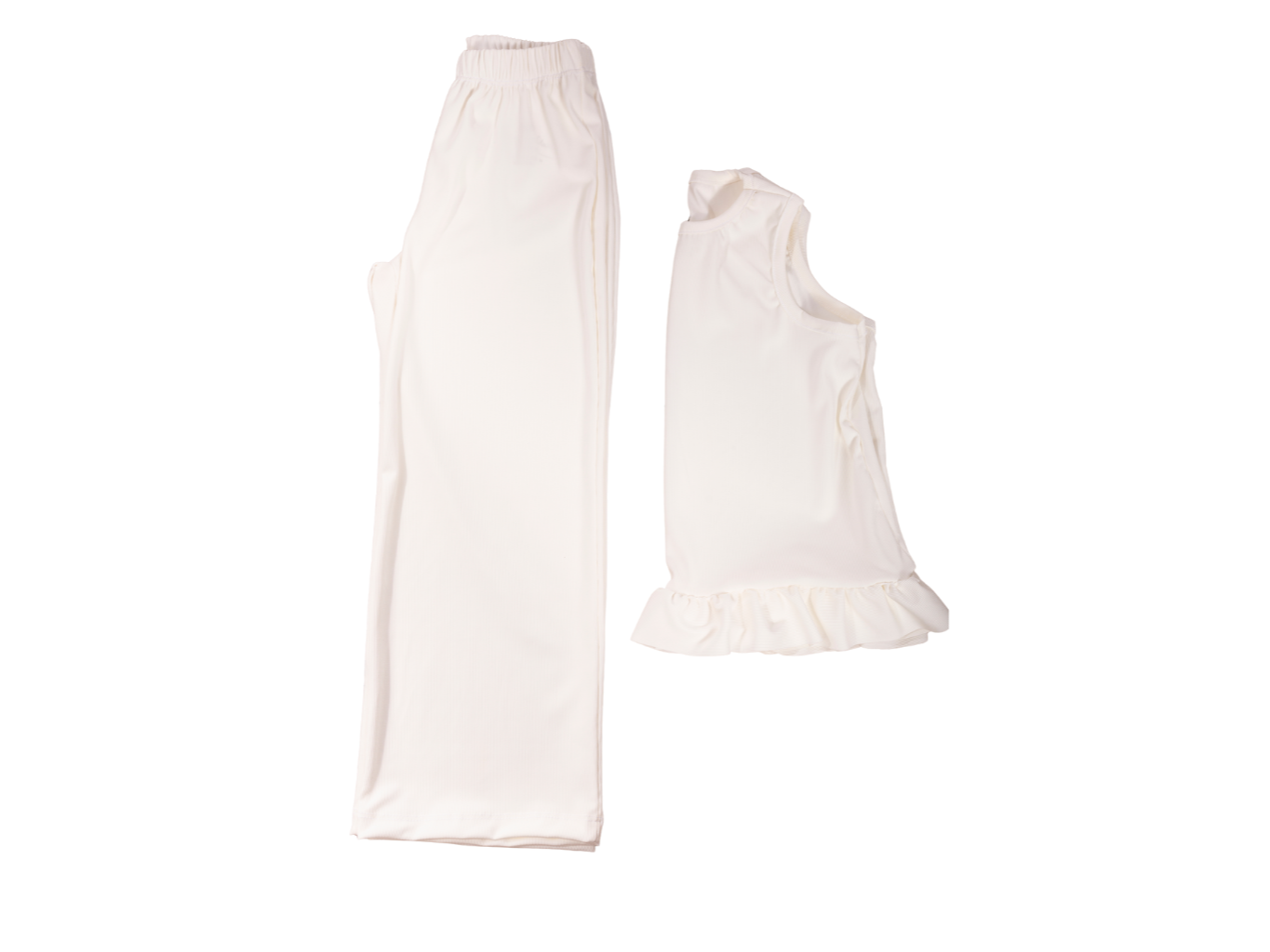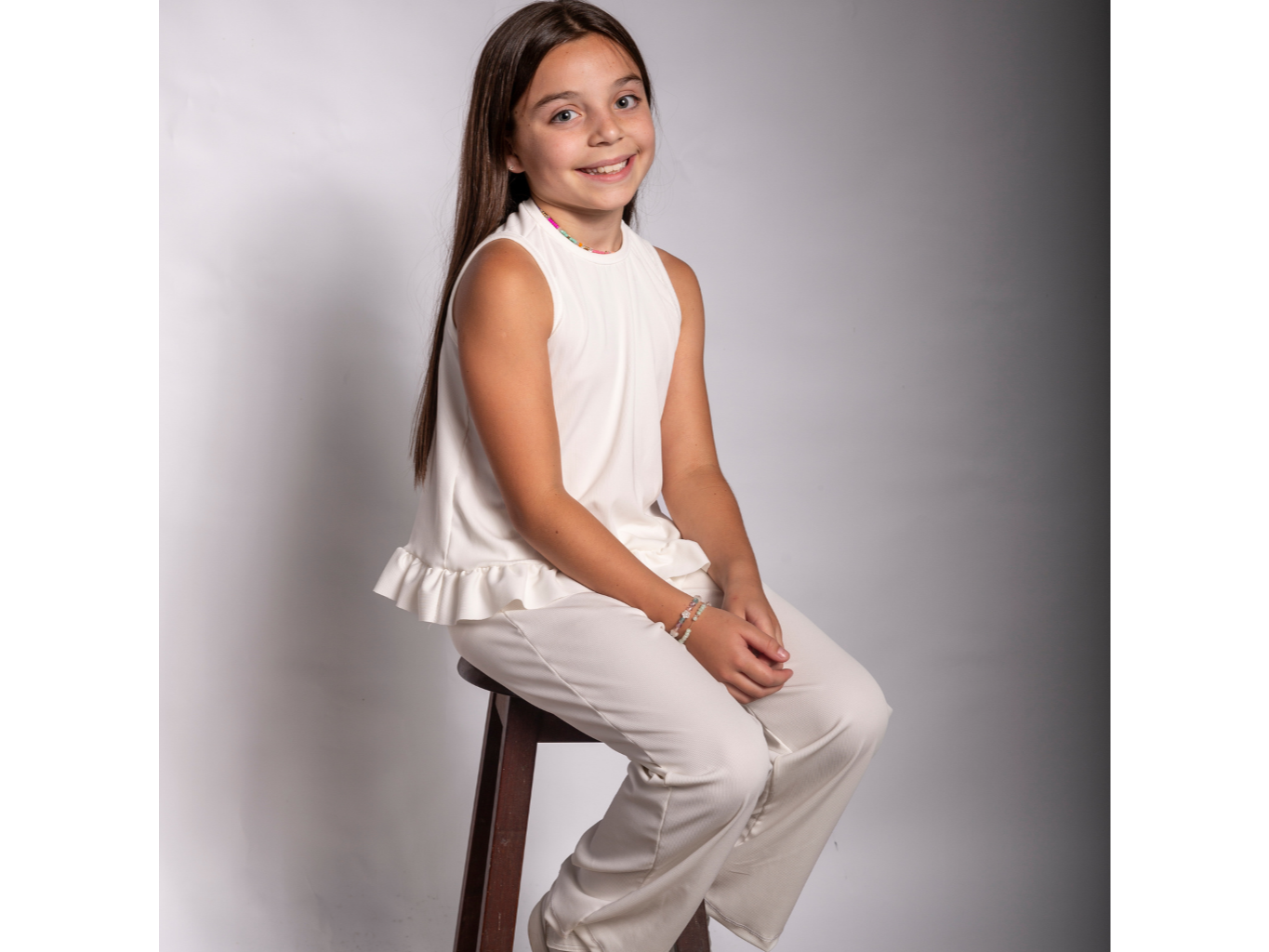 Esta elegante musculosa está confeccionada en Ribb elastizado, un tejido que combina comodidad y flexibilidad para acompañarte durante todo el día. Su diseño incluye un delicado volado en el ruedo que aporta un toque femenino y sofisticado a cualquier conjunto.
