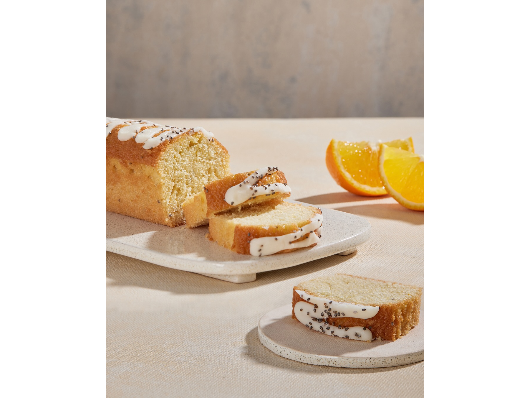 Ingredientes: Premezcla para panificados (almidón de maíz, harina de arroz, fécula de mandioca, azúcar, proteína de suero lácteo, espesante: goma guar, sal), azúcar, huevo, aceite de girasol alto oleico, agua, jugo de naranja, leche en polvo, ralladura de naranja, polvo de hornear, semillas de chía, sal, aromatizante: esencia natural de naranja, estabilizante: bicarbonato de sodio. Contiene leche, huevo y derivados de leche. Puede contener nueces y almendras.