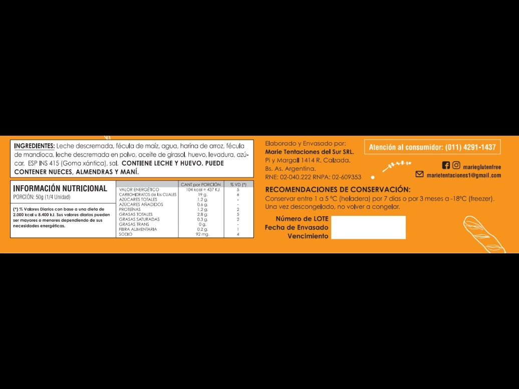 Pan tipo casero baguette (450 grs) Compartir por WhatsApp Copiar enlace 3 unidades en stock Recomendaciones de conservación: El producto puede conservarse hasta 7 días en heladera (entre 1 a 5 ºC) y hasta 3 meses en freezer (18 ºC), desde la fecha de elaboración.$7.250 Observaciones 0 / 150