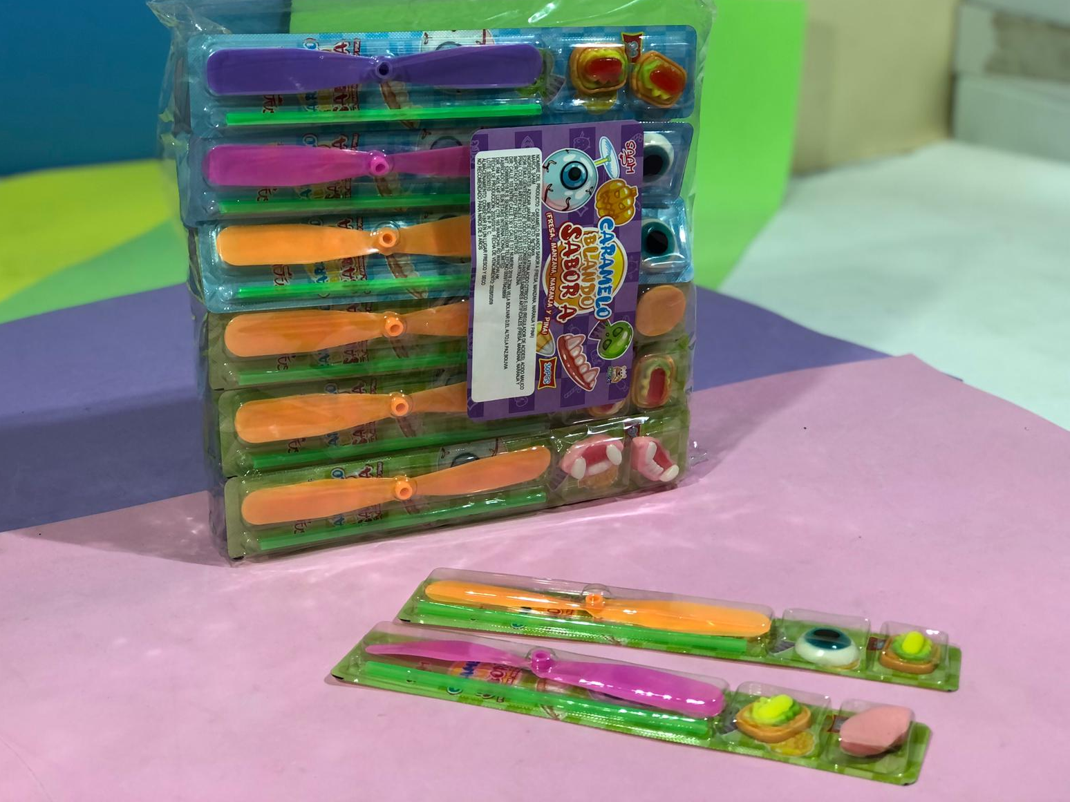CARAMELO BLANDO OJITOS, DIENTES, VARIOS CON HELICE x 30unid. - COD.: 585