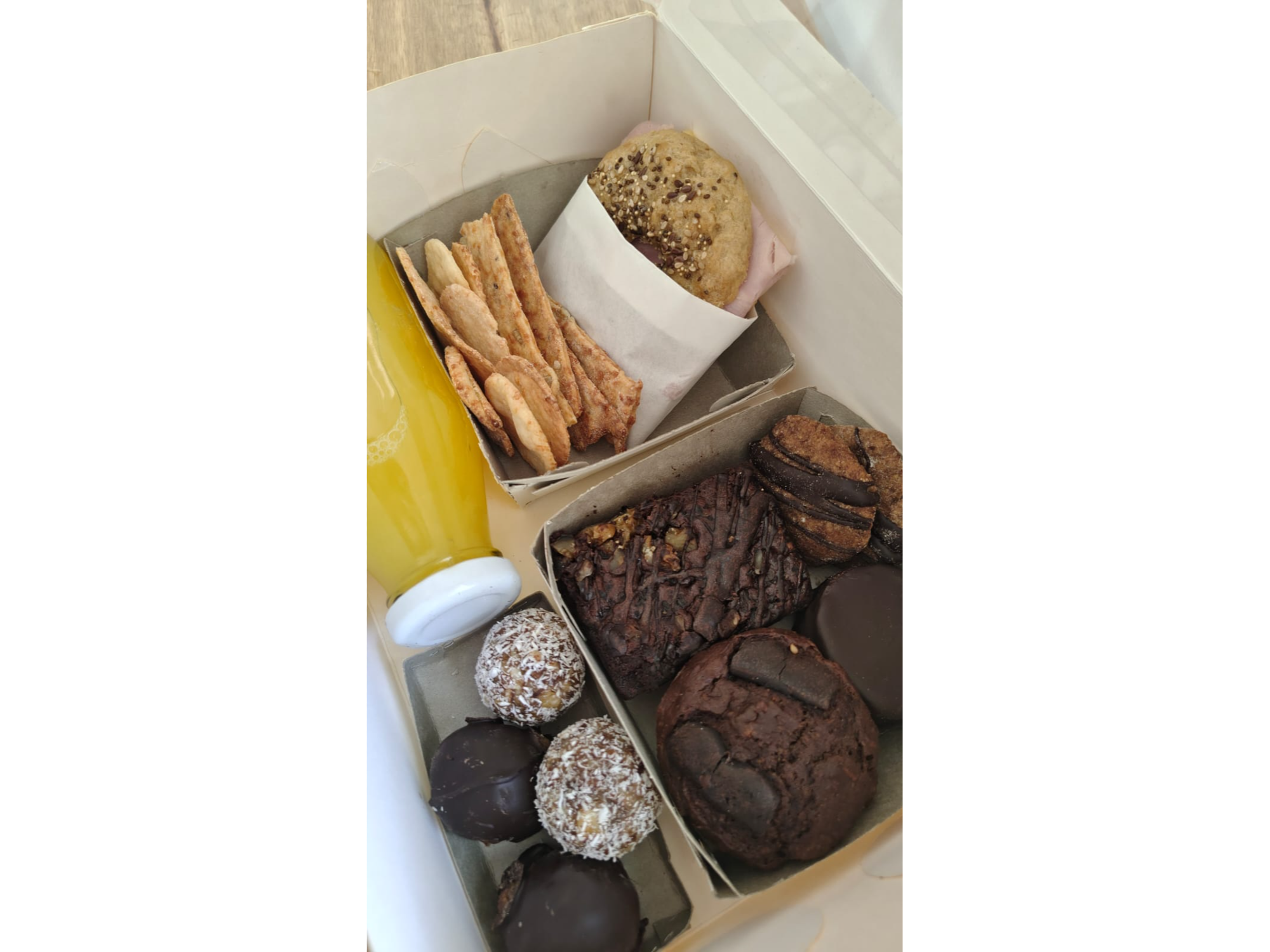 DESAYUNO DÍA DE LA MADREBROWNIE CHOCONUEZ MUFFINS CHOCO KETO MINI COOKIES X 2U ALFAKOK ENERGY BALLS X4U BASTONCITOS Y BIZCOCHITOS DE QUESO BAEGLE PROTEICO CON JAMÓN COCIDO NATURAL Y QUESO JUGO NATURAL BOTELLA VIDRIO 330CC$30.000$27.000 10% OFF Observaciones 0 / 150
