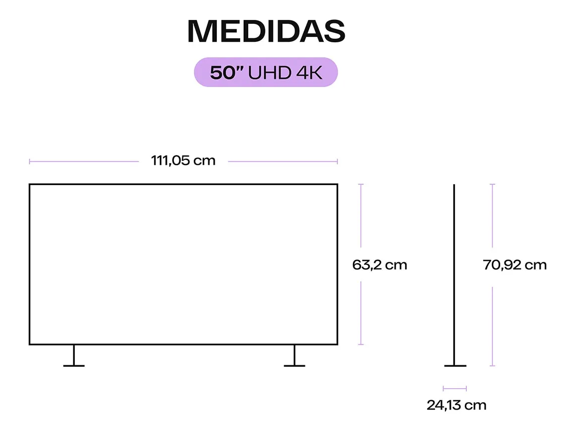 Smart TV QUINT 50 pulgadas UHD 4K - QT-50UHD89-25229 El Smart TV QUINT 50" UHD 4K ofrece una experiencia visual envolvente con resolución Ultra HD, conectividad avanzada y sonido potente. Diseñado con tecnología DLED y panel VA, brinda colores precisos, excelente contraste y un rendimiento confiable para disfrutar de tus películas, series y juegos con gran nivel de detalle. Características principales Marca: QUINT Modelo: QT-50UHD-25229 Tamaño de pantalla: 50 pulgadas (127 cm) Tipo de panel: VA Resolución: 4K Ultra HD (3840 x 2160 píxeles) Relación de aspecto: 16:9 Tipo de pantalla: Plana (Flat) Frecuencia nativa: 60 Hz Brillo máximo: 220 nits (típico) Contraste estático: 4000:1 Ángulo de visión: 178° / 178° Tiempo de respuesta: 8 ms Profundidad de color: 8 Bit + FRC Retroiluminación: DLED Local Dimming: No Amplia gama de color (WCG): No Tecnología de imagen HDR10: Sí HLG (Hybrid Log Gamma): Sí HDR10+ / Dolby Vision / Dolby Gaming: No MEMC / Motion Rate / Black Frame Insertion: No Upscaling 4K: No Gracias a su compatibilidad con HDR10 y HLG, ofrece imágenes con colores más intensos y mayor nivel de detalle en escenas brillantes y oscuras. Sonido Sistema de audio: 2.0 canales Potencia: 2 x 10 W (6 OMS) Tipo de parlantes: Integrados (Down Firing) Bluetooth Audio: Sí Dolby Audio: Sí TV Bluetooth Speaker (salida de sonido desde el TV): Sí Dual Audio (Bluetooth + TV): No El sistema de sonido Dolby Audio brinda una experiencia envolvente y clara, ideal para películas y contenido musical. Smart TV y sistema operativo Plataforma: VIDAA Sistema de TV: ISDB-T Navegador Web: Odin Asistente de voz Alexa: Compatible (Works with Alexa) Chromecast / AirPlay / Google Home / Siri: No Miracast (Screen Mirroring): Sí Funciones inteligentes: Reducción de ruido Control parental Temporizador de apagado automático Subtítulos (Closed Caption) Conectividad Wi-Fi: Dual Band (2.4 / 5 GHz) - IEEE802.11 a/b/g/n/ac Bluetooth: Versiones 2.1 + EDR / 4.2 / 5.1 HDMI: 3 puertos HDMI 2.0 USB: 2 puertos USB 2.0 Ethernet (LAN): 1 puerto Entrada de antena RF: 1 Salida de audio digital óptica: 1 Entradas AV, VGA o auriculares: No Energía Consumo máximo: 108 W Consumo en espera: 0.5 W Fuente de alimentación: AC 100-240 V / 50-60 Hz Rango de voltaje amplio: Sí Diseño y dimensiones Diseño: Pantalla plana con marco delgado Color: Negro Montaje VESA: 200 x 200 mm (tornillos M5) Base: Dual Stand de material ABS Dimensiones sin base: 111 x 64 x 7.5 cm aprox. Dimensiones con base: 111 x 71 x 24 cm aprox. Peso del TV: 9.76 kg aprox. Accesorios incluidos Control remoto Cable de alimentación Manual rápido (QSG) No incluye cable HDMI Certificaciones y seguridad Cumple con normativas de seguridad eléctrica internacionales Modo ahorro de energía con consumo en espera ultrabajo Disfrutá el entretenimiento en alta definición El Smart TV QUINT 50” 4K UHD te permite vivir una experiencia visual de gran realismo, con colores vivos y excelente definición. Su compatibilidad con Alexa, conectividad Wi-Fi de doble banda y sonido Dolby Audio lo convierten en la opción ideal para quienes buscan calidad, rendimiento y funcionalidad en un solo equipo. Aviso legal • Apto para la red eléctrica de tu país.