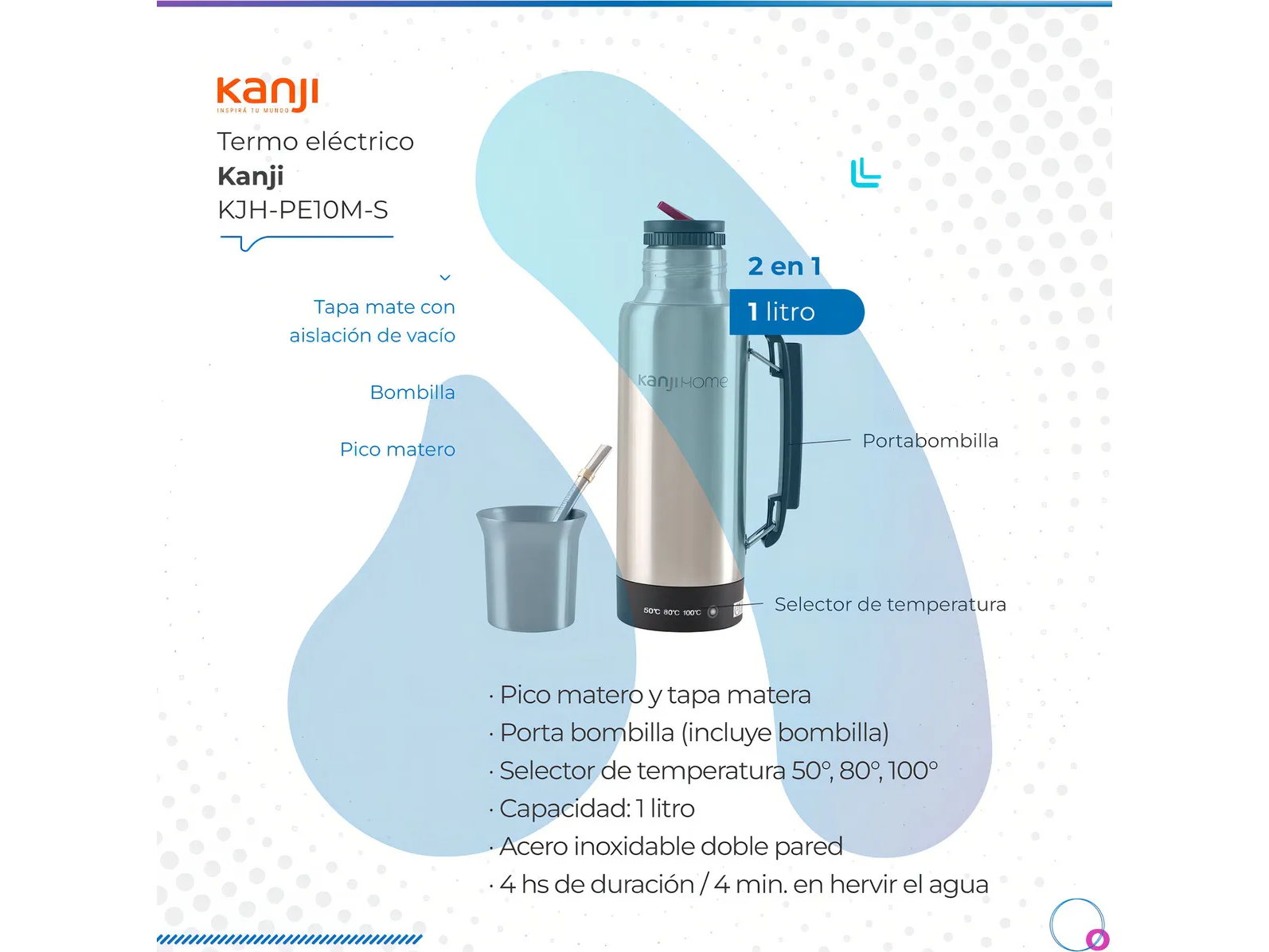 KJH-PE10M-NTermo Electrico T-mate Negro 2 unidades en stock Termo Digital Portable 4Hs de duración 4Min en hervir el agua Pico Matero Tapa Matera Porta bombilla (Incluye bombilla) Selector de temperatura Capacidad 1L$53.233 Observaciones 0 / 150