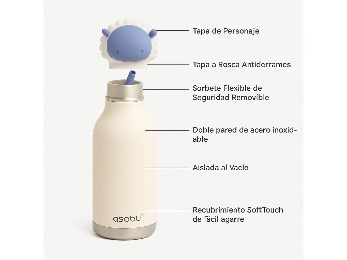 Última unidad ¡Una botella única, divertida y funcional! La botella Asobu Bestie es una botella de agua con doble capa de acero inoxidable y un diseño tan adorable ¡que hasta incluye un personaje distintivo en la tapa! Hay diferentes opciones para elegir, cada una con una personalidad propia. ¡Elegí la que más te guste!
