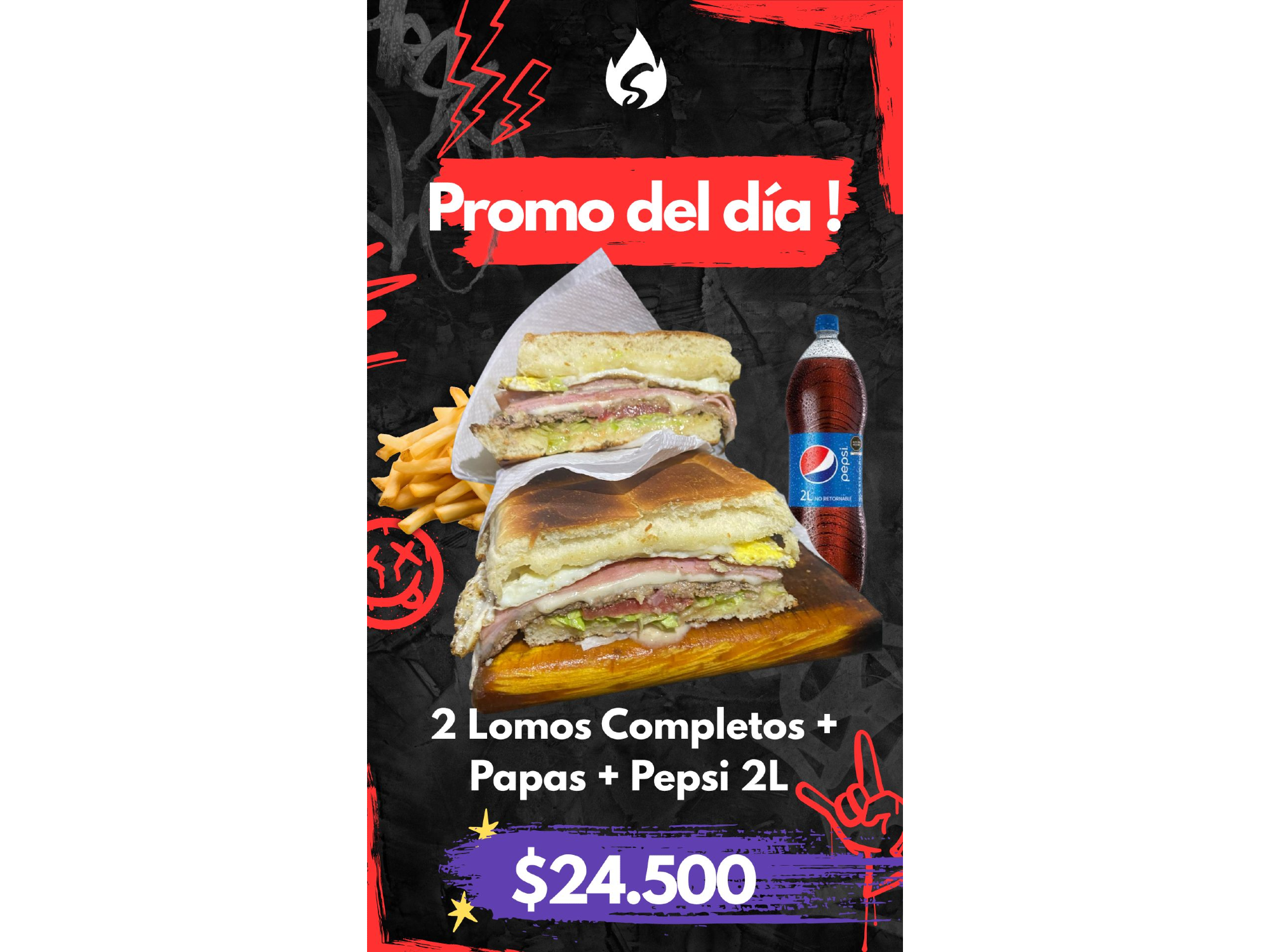 2 Lomos Completos + Papas + Pepsi 2 LT2 Lomos Completos + Papas + Pepsi 2 LT$24.500 Personalizá tu selección Las siguientes opciones aplican para cada producto agregado. Papas fritas Seleccioná las opciones que quieras.Papas fritas comunesPapas con salsa Stack.$2.500Papas McCain Crinkles Sin stock $2.500Papas Cheddar$2.500 Papas fritas Seleccioná las opciones que quieras.Papas fritas comunesPapas con salsa Stack.$2.500Papas McCain Crinkles Sin stock $2.500Papas Cheddar$2.500 Observaciones 0 / 150