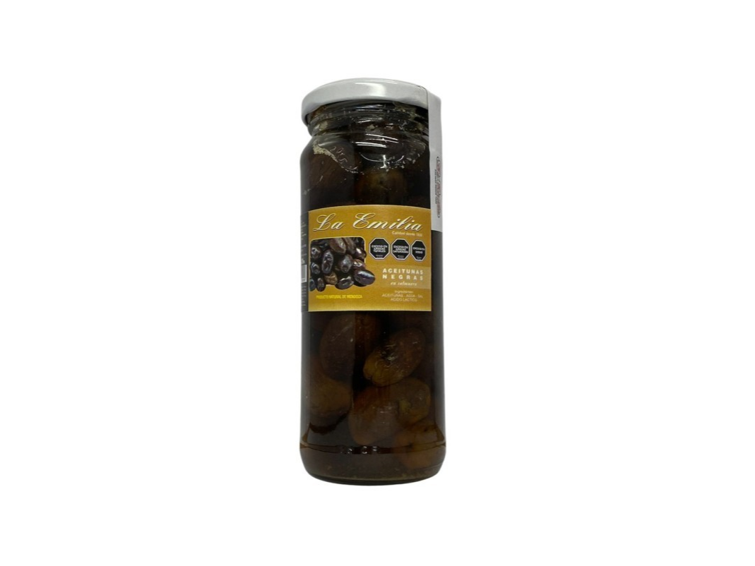 ACEITUNAS LA EMILIA NEGRAS C/CAROZO FRASCO x 220 g.