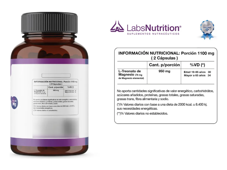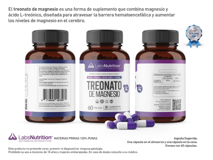 2 unidades en stock El Treonato de magnesio es un compuesto que potencia los niveles de magnesio en el sistema nervioso central y favorece que este ingrese directamente a la mitocondria, siendo útil para reducir el cansancio y la fatiga.