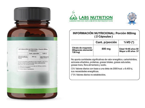 Aprovecha los beneficios del Citrato de Magnesio y mejora tu calidad de vida con Labs Nutrition. Este suplemento es una excelente adición a tu dieta, ayudando a mantener un estilo de vida equilibrado y saludable.