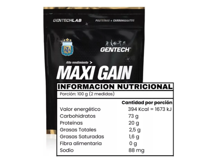 Maxi Gain Gentech 1250 Grs es un suplemento diseñado especialmente para quienes buscan aumentar su masa muscular y mejorar su rendimiento deportivo. Este ganador de peso está formulado con maltodextrina, dextrosa y fructosa, que proporcionan carbohidratos de combustión lenta, ideales para la recuperación del glucógeno muscular y la recuperación post esfuerzo. Cada porción de 100 g ofrece 20 g de proteínas de suero ultrafiltradas, contribuyendo al crecimiento muscular. Además, con un valor energético de 392 kcal, es perfecto para complementar tu dieta. Este producto es libre de gluten y contiene lactosa, por lo que no es vegano. Recomendado para mayores de 18 años, Maxi Gain se presenta en un práctico sachet de 1250 g, ideal para facilitar su uso en cualquier momento del día. Asegúrate de incluirlo en tu rutina nutricional para maximizar tus resultados.