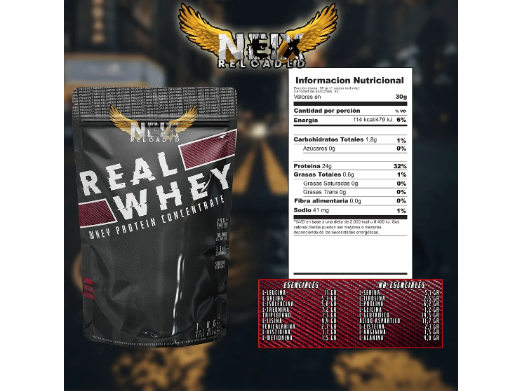 REAL WHEY PROTEIN 80% DE LA RECONOCIDA MARCA NEIX EN SU VERSIÓN RELOADED V2 EN DOY PACK ECO-PACK X 1 KG. Proteìna ìcono por excelencia Neix es ahora Neix Reloaded V2 y presenta Real Whey 80. -Real Whey 80% es una proteìna de caracter instantàneo ideal para batidos pre y post-entrenamiento. Una incorrecta obtenciòn de la materia prima resultarìa en una baja calidad del producto final terminado y se verìan comprometidos los valores biològicos. Es por esto que desde principio a final NEIX RELOADED se asegura que las materias primas sean las adecuadas, de maxima calidad y correctamente testeadas. REAL WHEY es una proteína focalizada en la màxima calidad de sus ingredientes pero fijàndose en todos los detalles como lo es la solubilidad, tan importante para los batidos rápidos que el público necesita en cuestión de segundos.