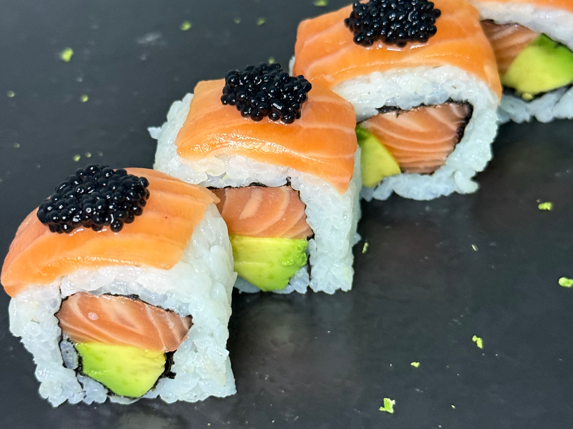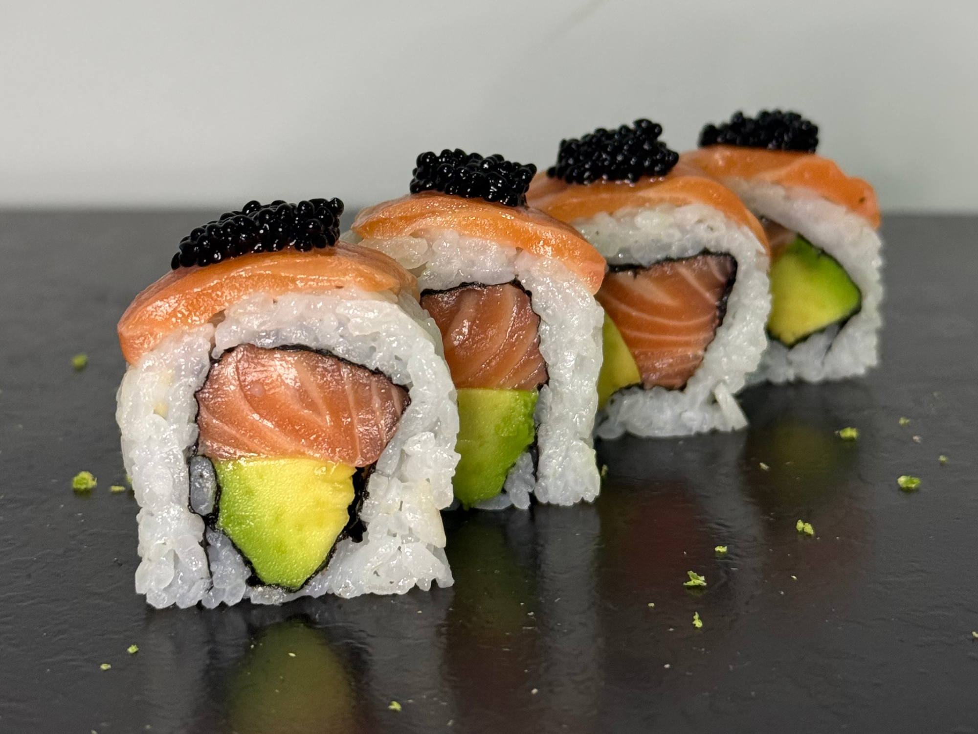 Caviar rollSalmón y palta, envuelto en salmón coronado con caviar Presentaciones Seleccioná una opción.X5$11.500X8$13.500 Observaciones 0 / 150