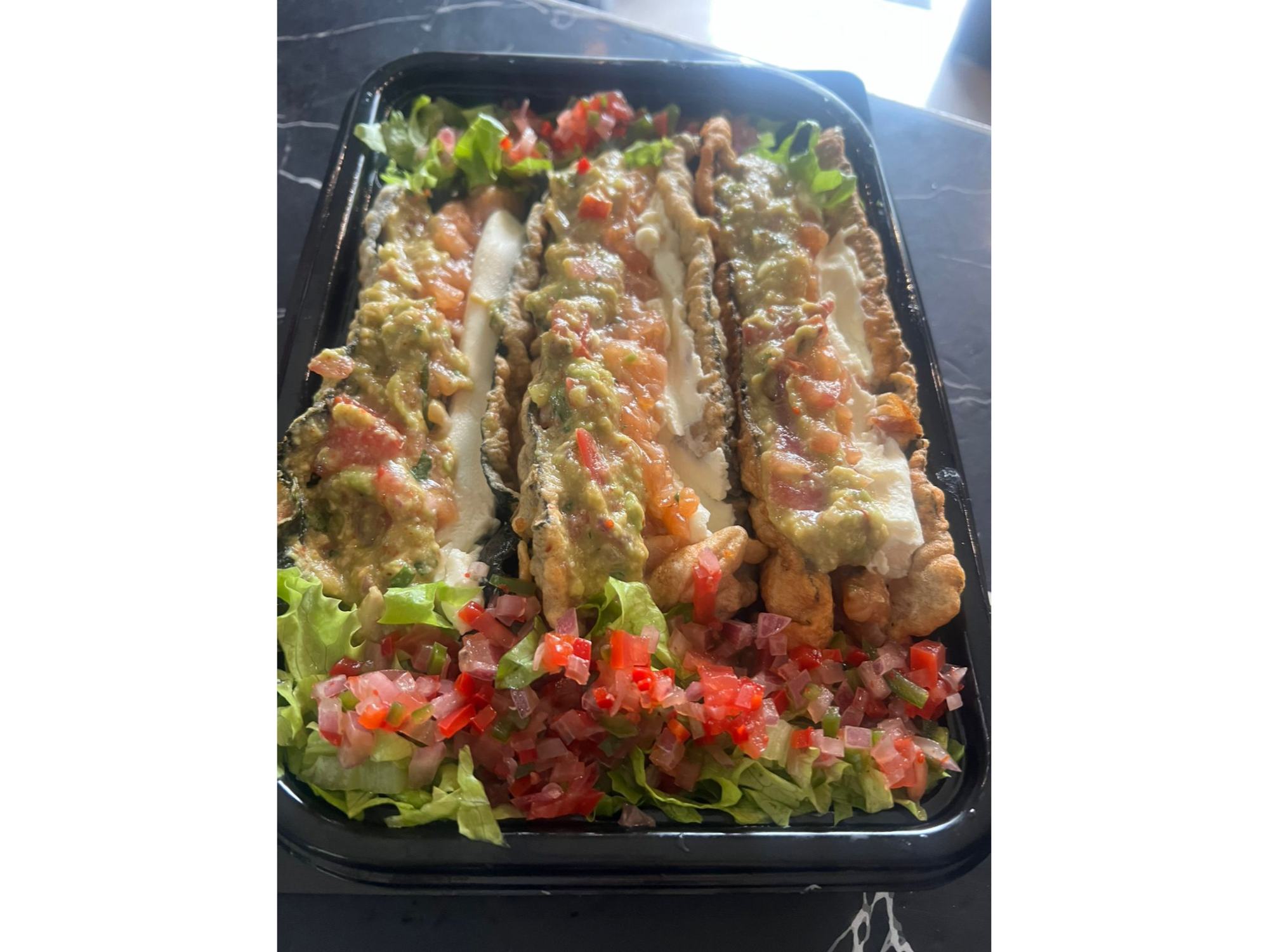 SUSHI TACOS X 3 Compartir Tacos elaborados con lámina de alga crocante, Rellenos con un tartar de salmón y nuestra mayo exclusiva. Adornada pero acompañada de una base de lechuga fresca con una salsa criolla japo, que aporta frescura y sabor único.$28.000 Observaciones 0 / 150